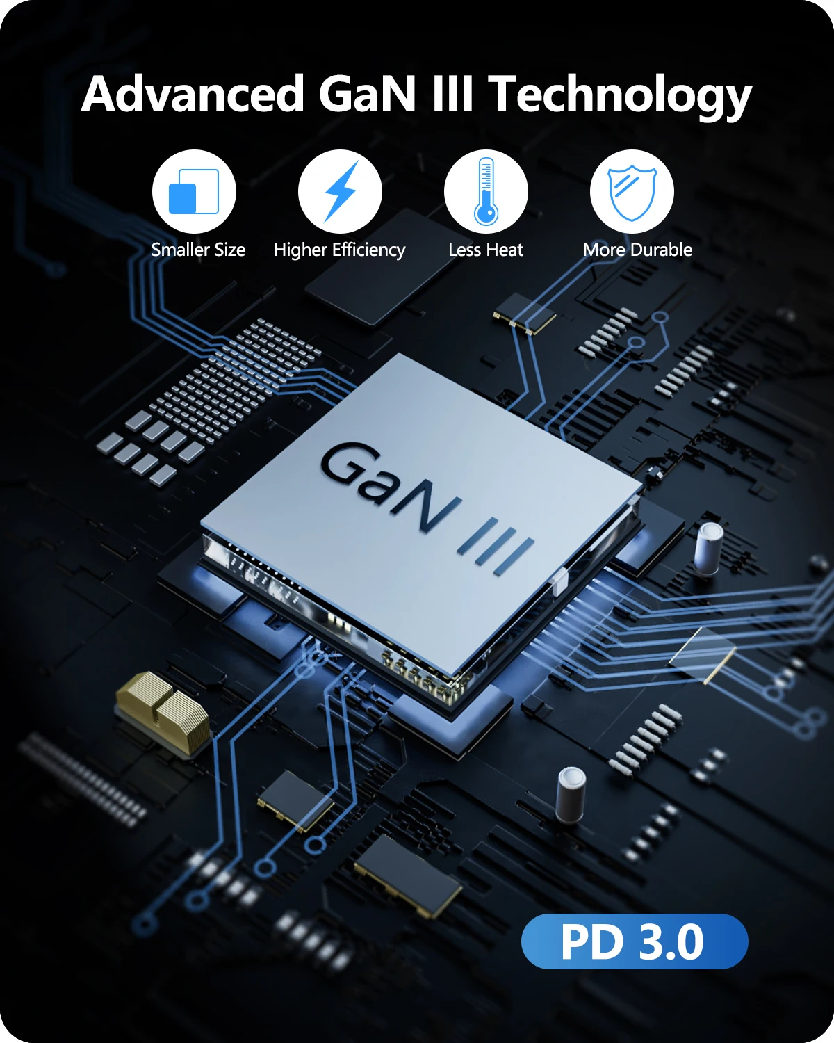 【Tecnología de vanguardia GaN III】 La tecnología GaN Pro hace que nuestro último adaptador de viaje sea más pequeño sin una gota de energía, y proporciona una mejor experiencia de carga rápida a baja temperatura. Equipado con fusible doble 8A integrado para protección contra sobrecarga y válvula de seguridad, protegerá a las personas de lesiones si tocan directamente partes vivas en el zócalo.