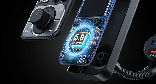 El chip Bluetooth 5,1 incorporado proporciona una conexión más estable para transmitir música a través de la frecuencia FM y hacer llamadas con manos libres, lo que permite un emparejamiento más rápido con dispositivos compatibles, micrófono incorporado, admite navegación inteligente por voz desde su teléfono, transmitiendo el audio desde la aplicación de navegación/Siri/Asistente de Google a su automóvil.