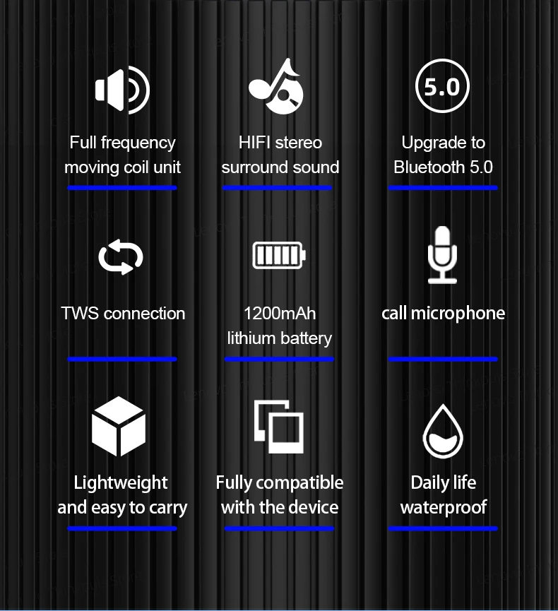 ⬤. Sonido HIFI envolvente y potente efecto de sonido de graves.