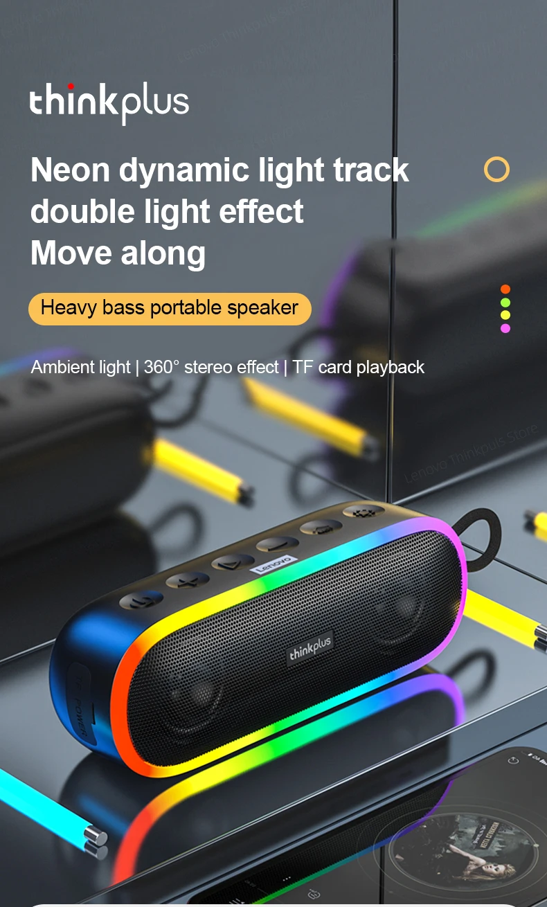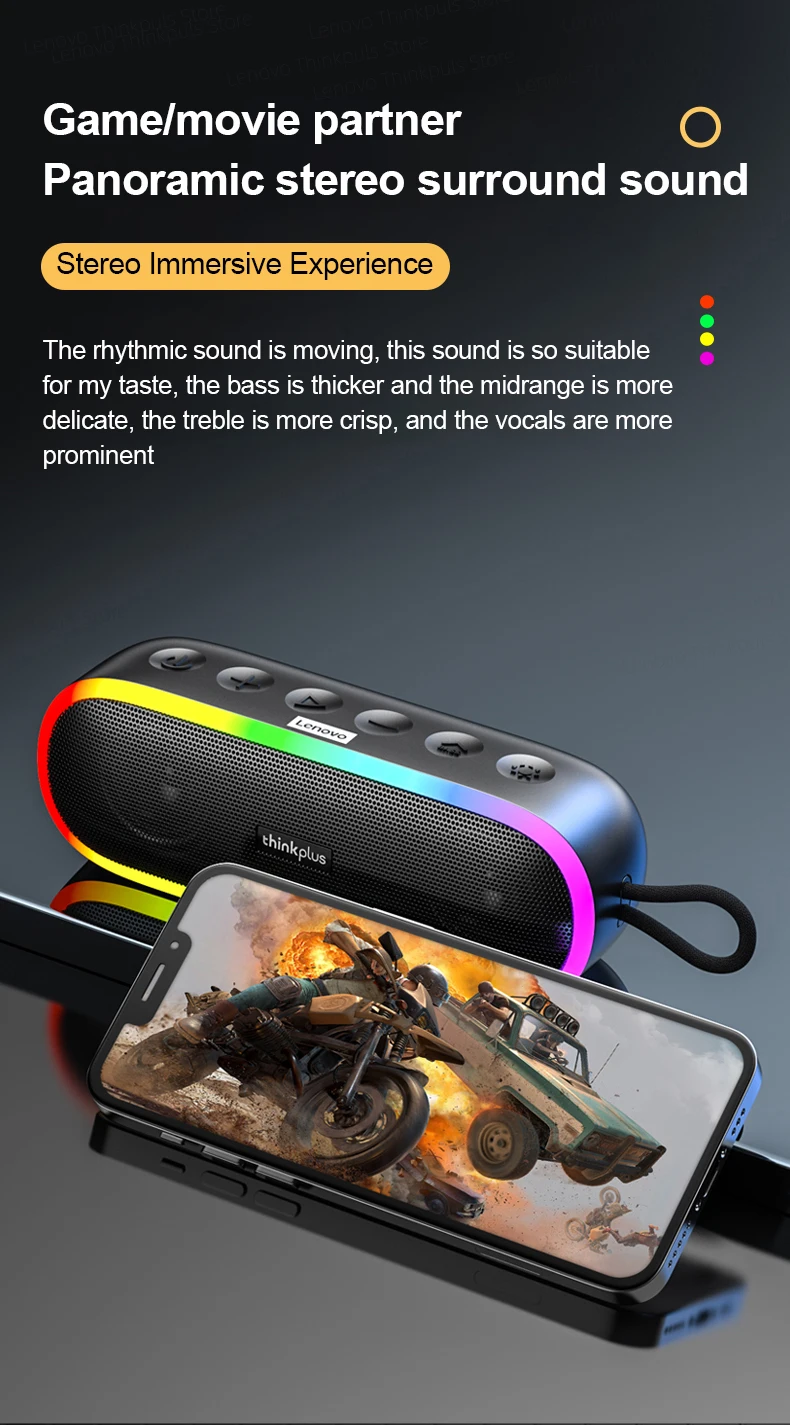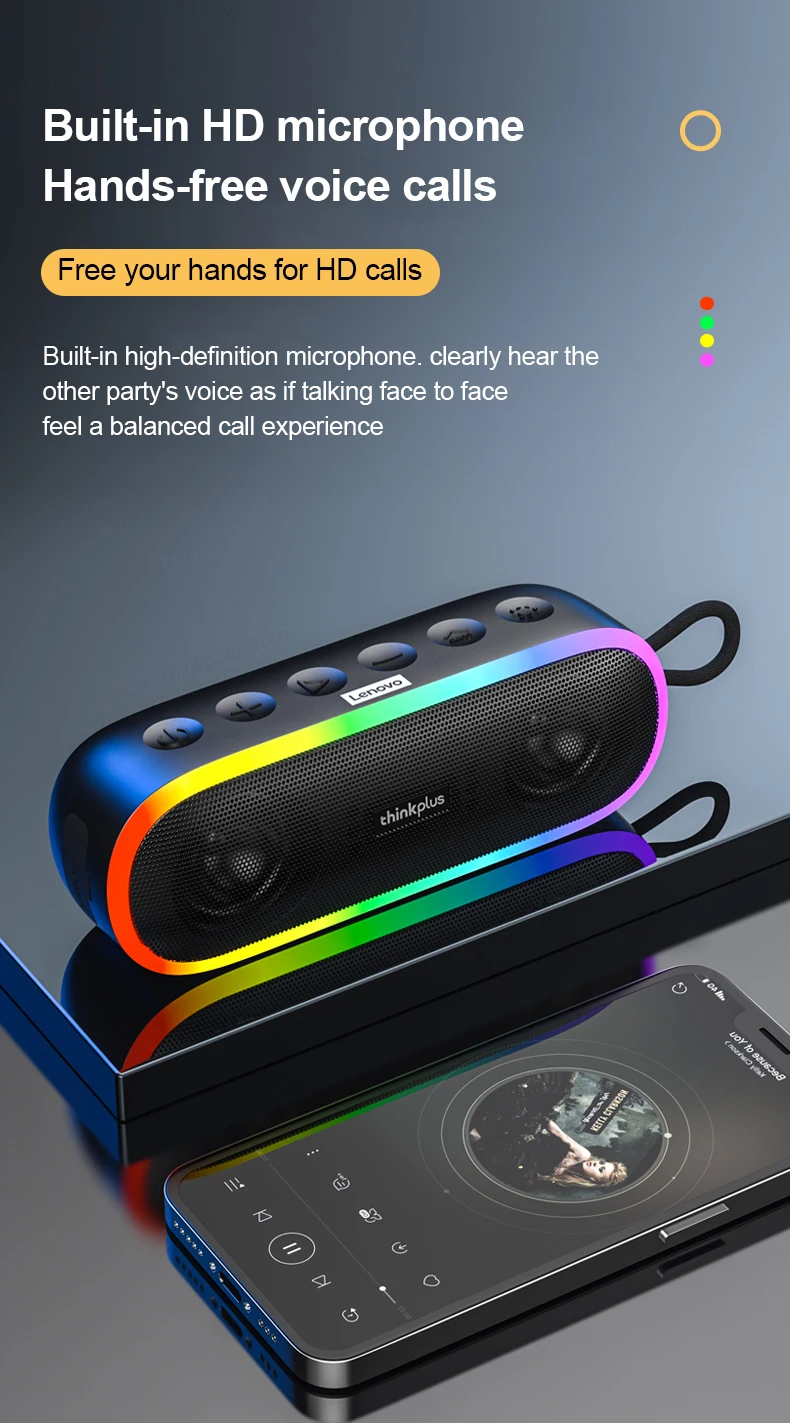 Comprar Lenovo-altavoz inalámbrico K8 100%, dispositivo Portátil con Bluetooth, Hifi, LED, para exteriores, caja de graves envolvente, micrófono, novedad, 5,0