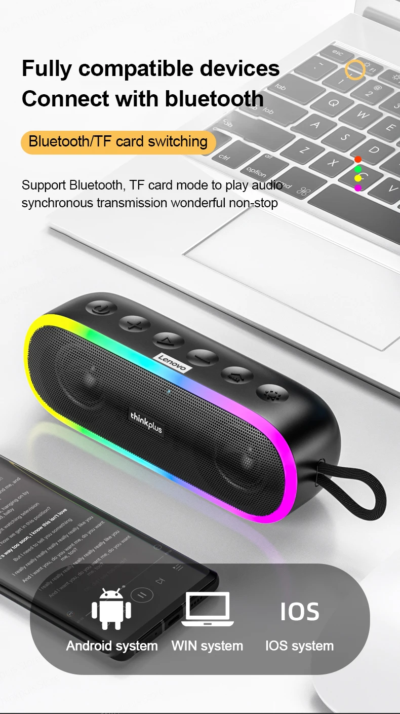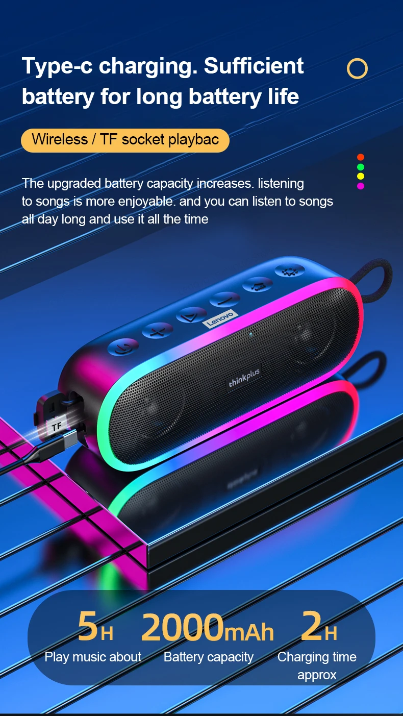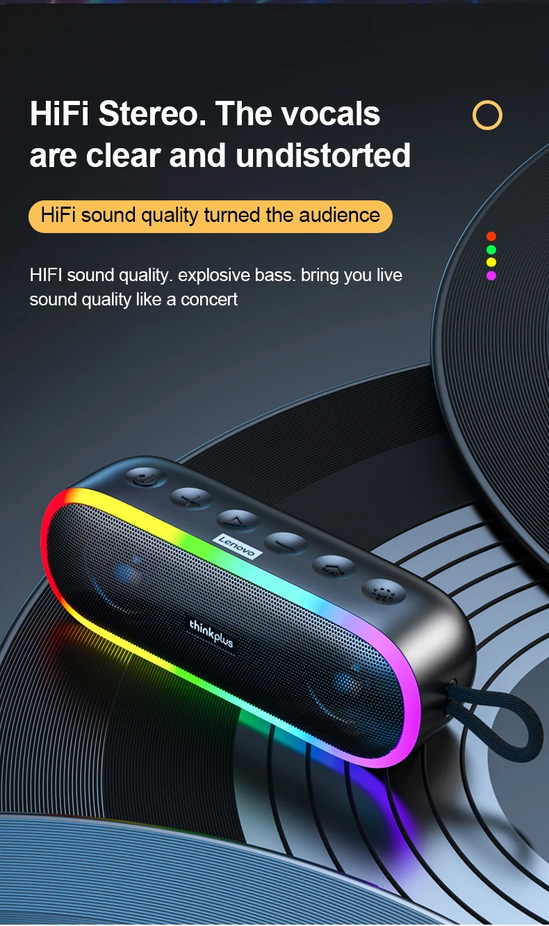 Comprar Lenovo-altavoz inalámbrico K8 100%, dispositivo Portátil con Bluetooth, Hifi, LED, para exteriores, caja de graves envolvente, micrófono, novedad, 5,0