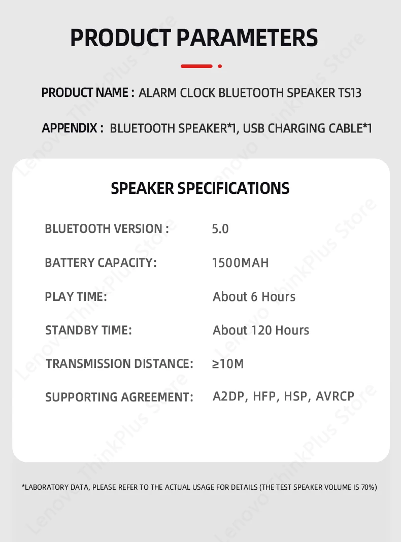 Comprar Lenovo-altavoz inalámbrico TS13, reproductor estéreo con Subwoofer portátil, LED, Digital, despertador inteligente, diseño de espejo, 9D Surround