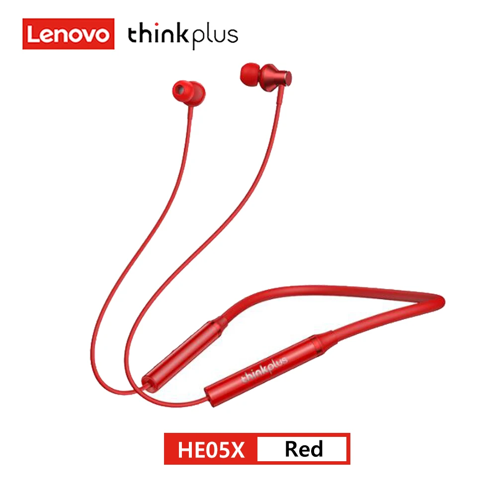 Lenovo Bluetooth 5.0 auriculares inalámbricos con banda para el cuello magnética auriculares deportivos impermeables IPX5 con micrófono con cancelación de ruido HE05X