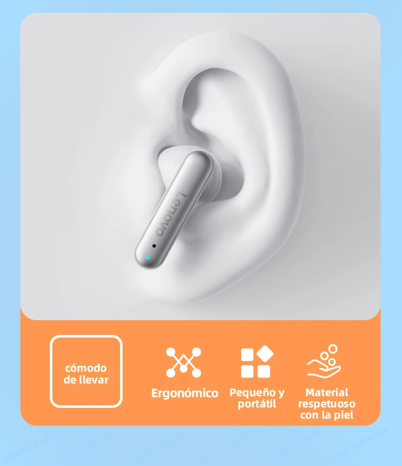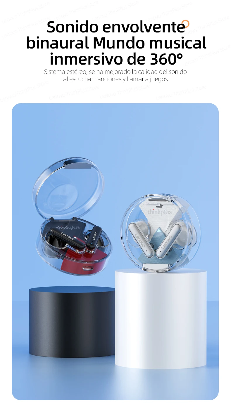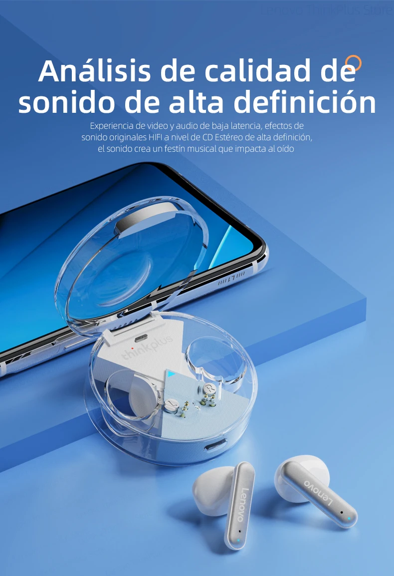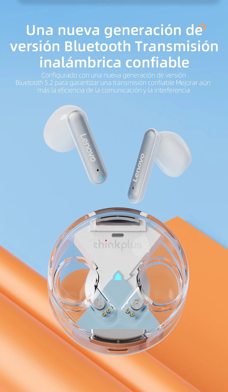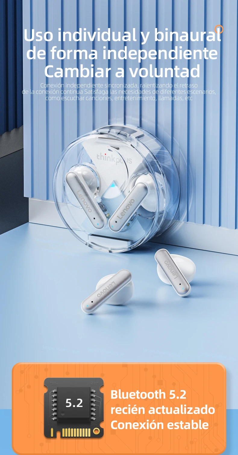 Los últimos auriculares de diseño de Lenovo en 2022. Diseño superior y transparente elegante que integra un diseño elegante y una escucha cómoda. No hay necesidad de preocuparse por que se caiga con una estructura flexible y ultraligera.