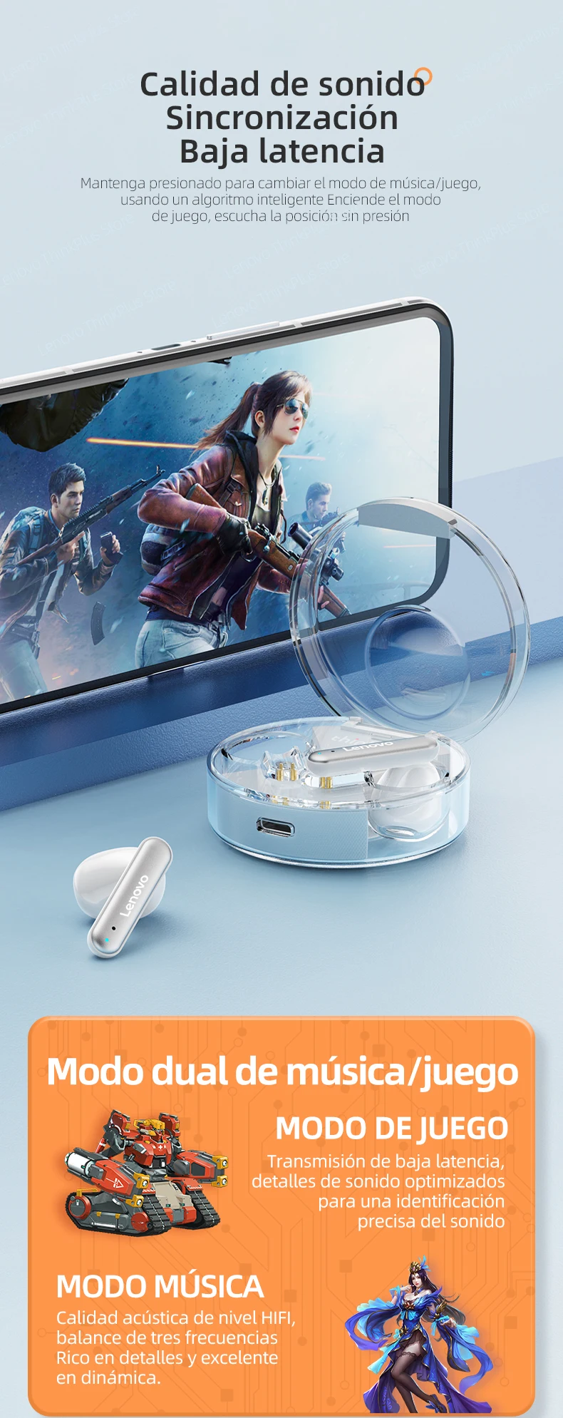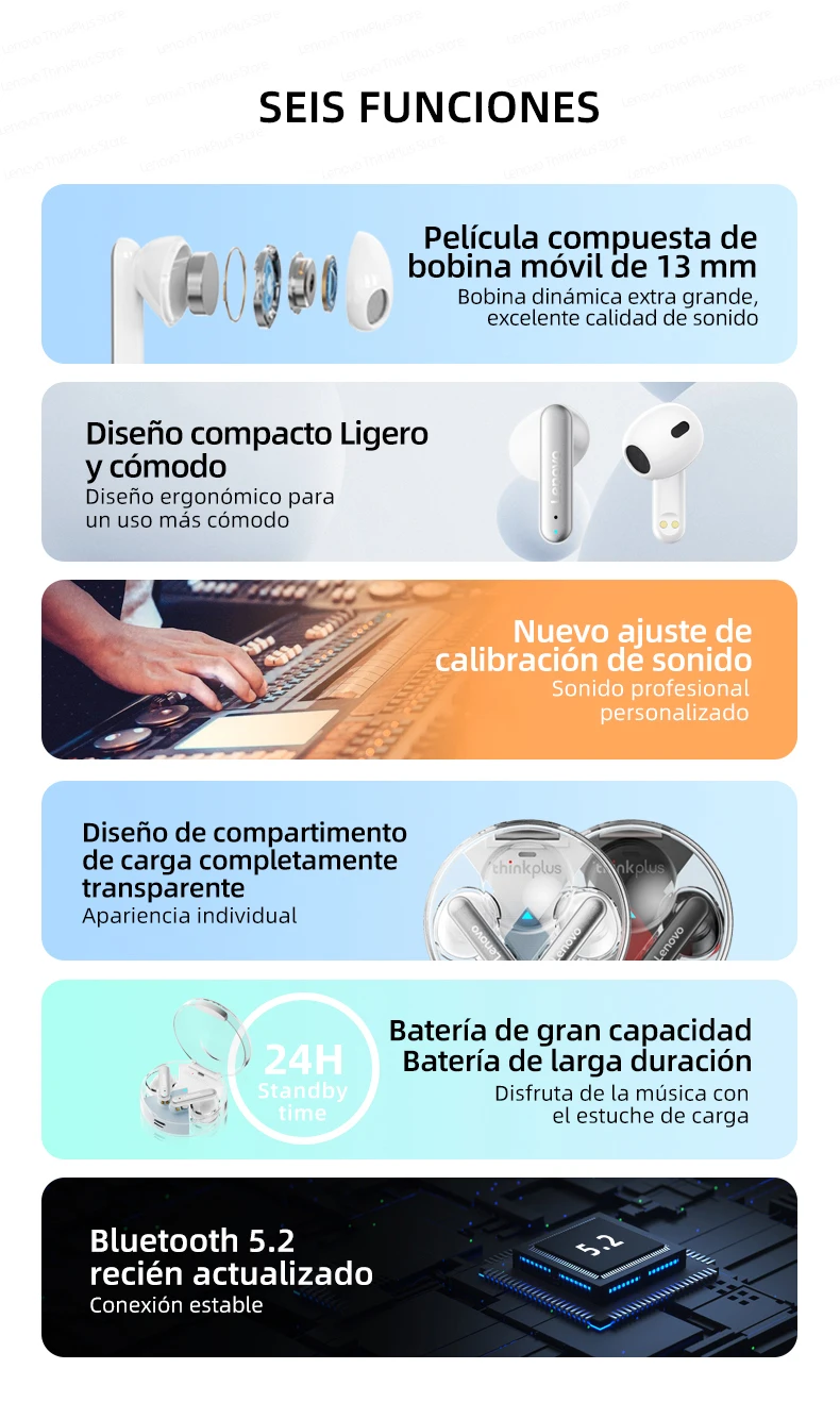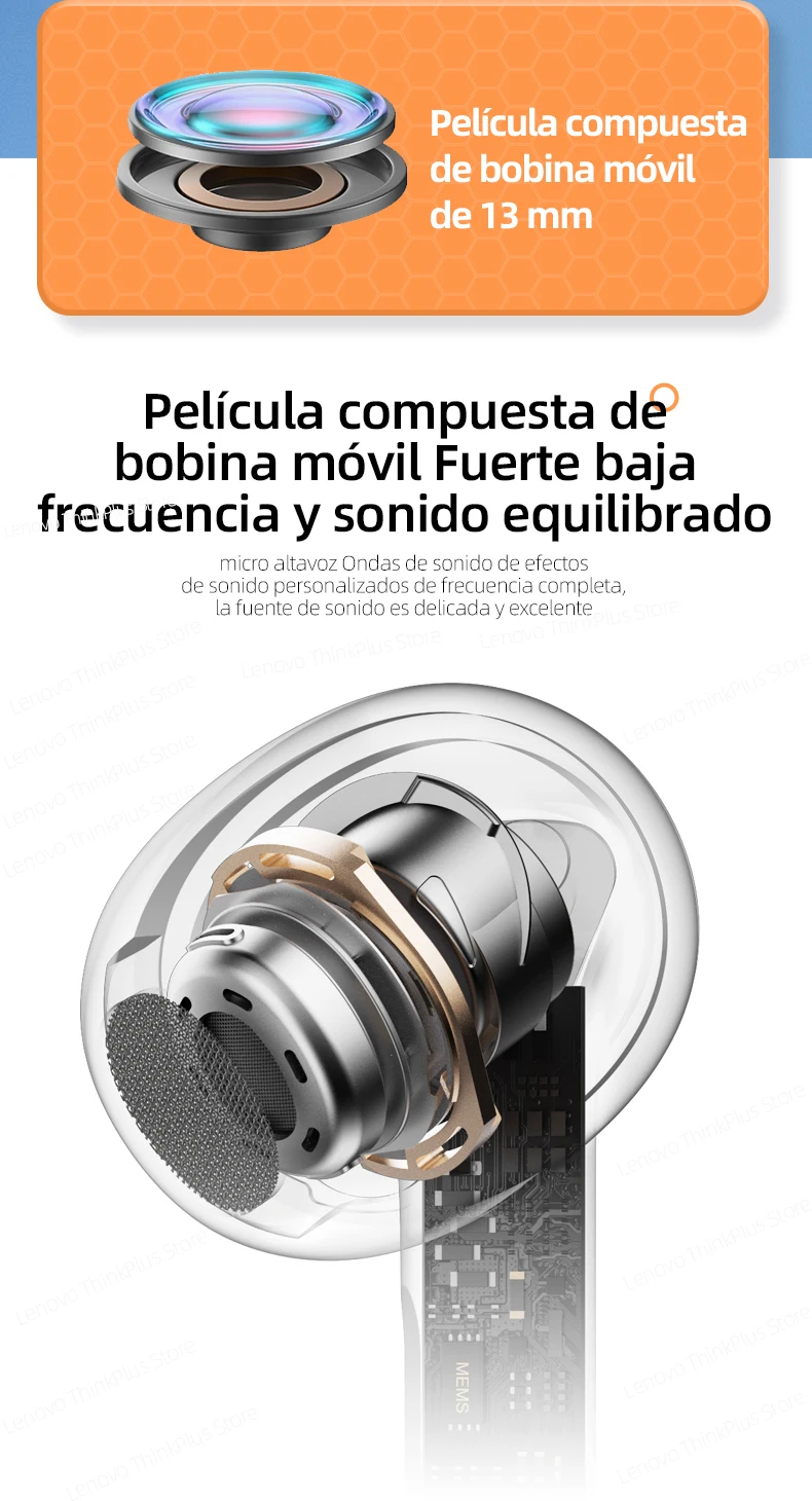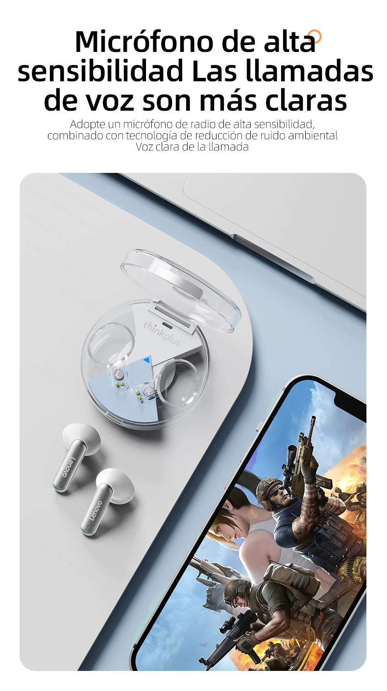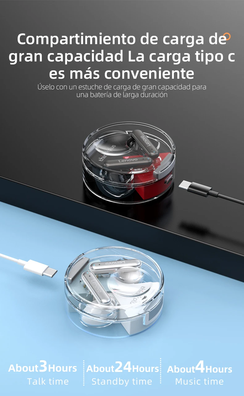 Los últimos auriculares de diseño de Lenovo en 2022. Diseño superior y transparente elegante que integra un diseño elegante y una escucha cómoda. No hay necesidad de preocuparse por que se caiga con una estructura flexible y ultraligera.