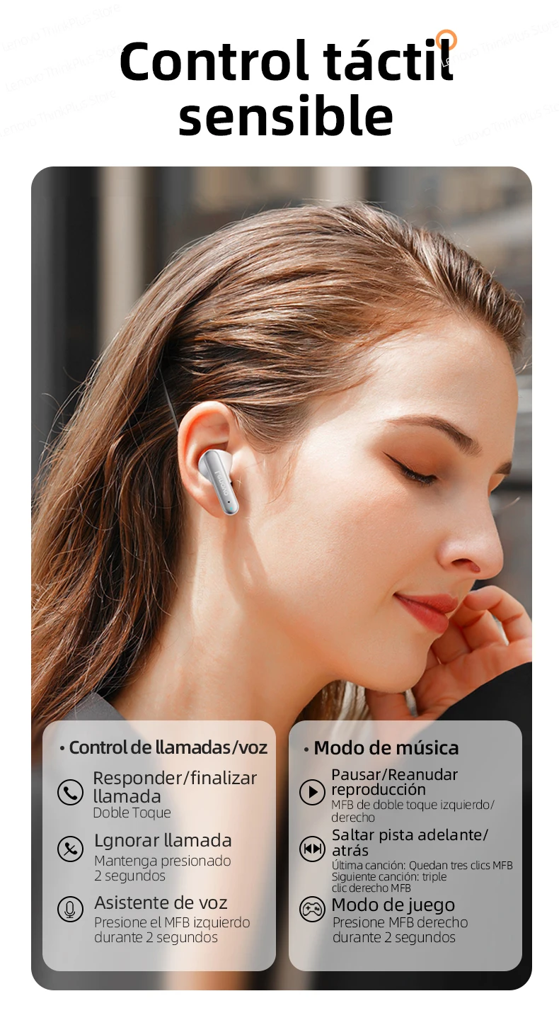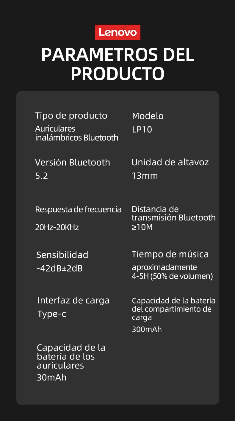 Comprar Lenovo-auriculares inalámbricos LP10 TWS, cascos con Bluetooth 5,2, estéreo Dual, reducción de ruido, bajos, Control táctil, modo de reposo largo