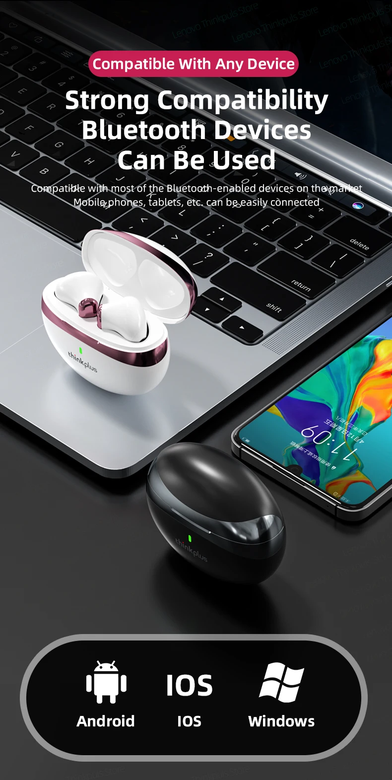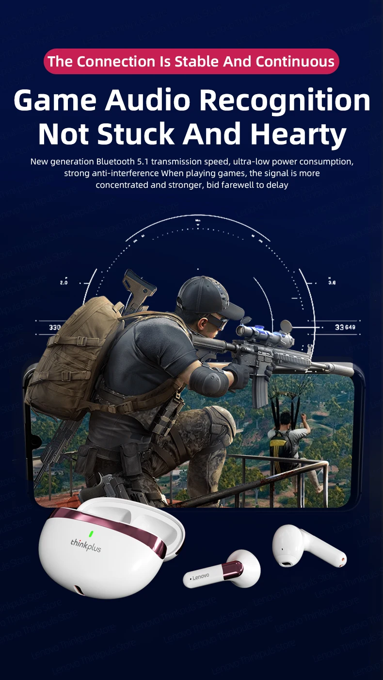 Comprar Lenovo-auriculares inalámbricos LP11 Pro 100%, dispositivo de audio con Bluetooth 5,1, Subwoofer HiFi, sonido estéreo, para juegos, con micrófono HD, Original