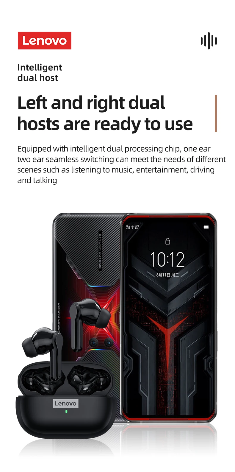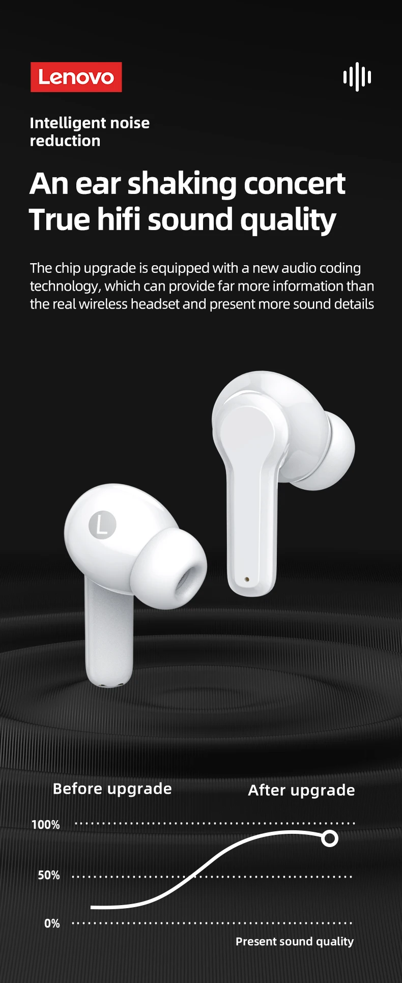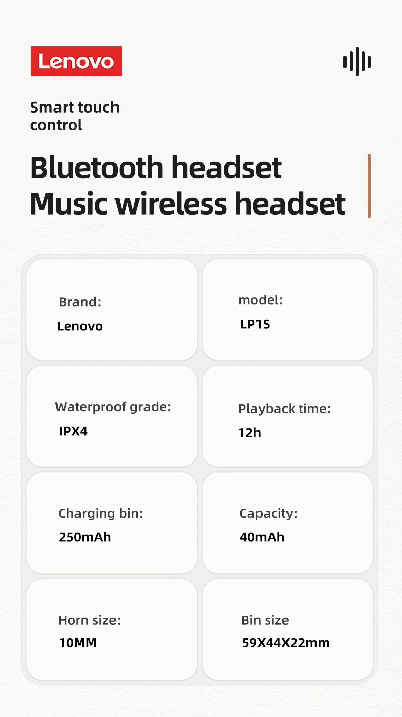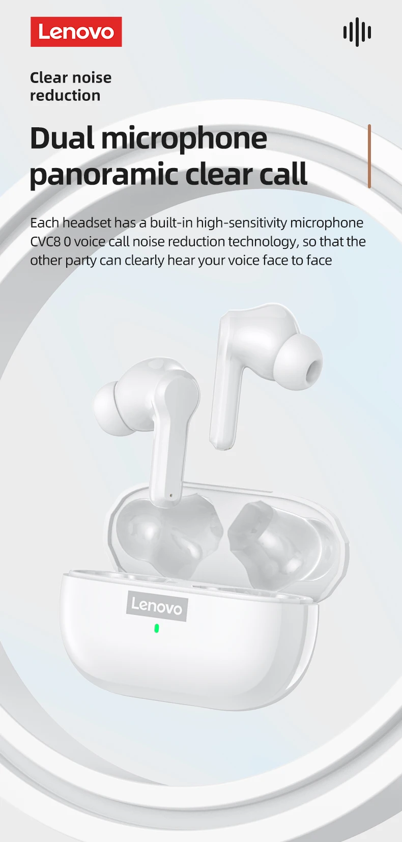 Comprar Lenovo-auriculares inalámbricos LP1S TWS con Bluetooth 5,0, cascos deportivos impermeables con micrófono para Android e IOS, originales