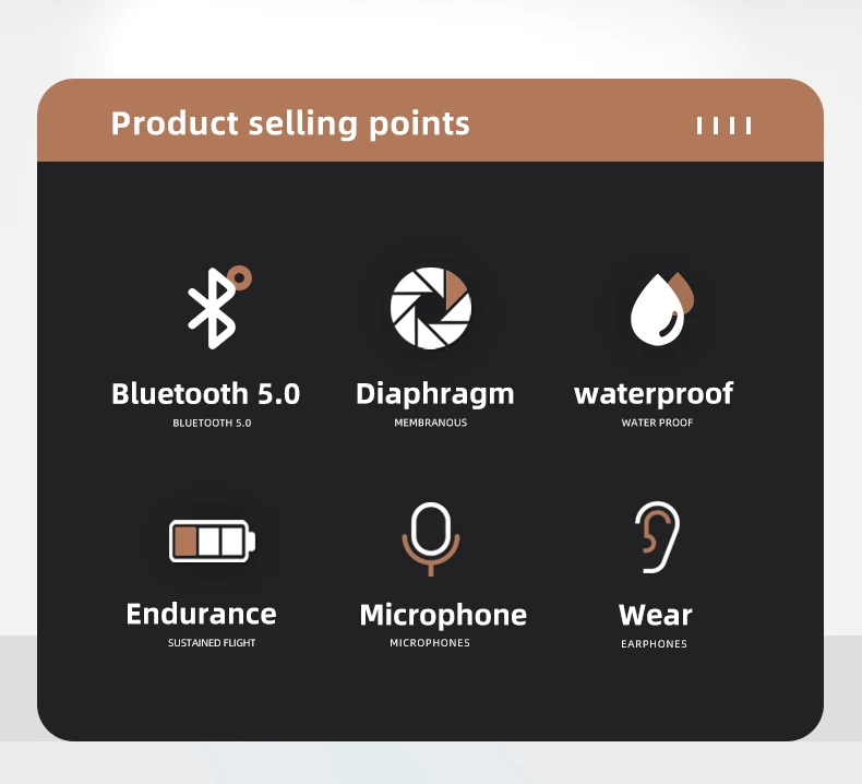 5. La caja de carga de 250mAh puede cargar 2 auriculares aproximadamente 5 veces, proporcionando más 24 horas de tiempo de reproducción de música