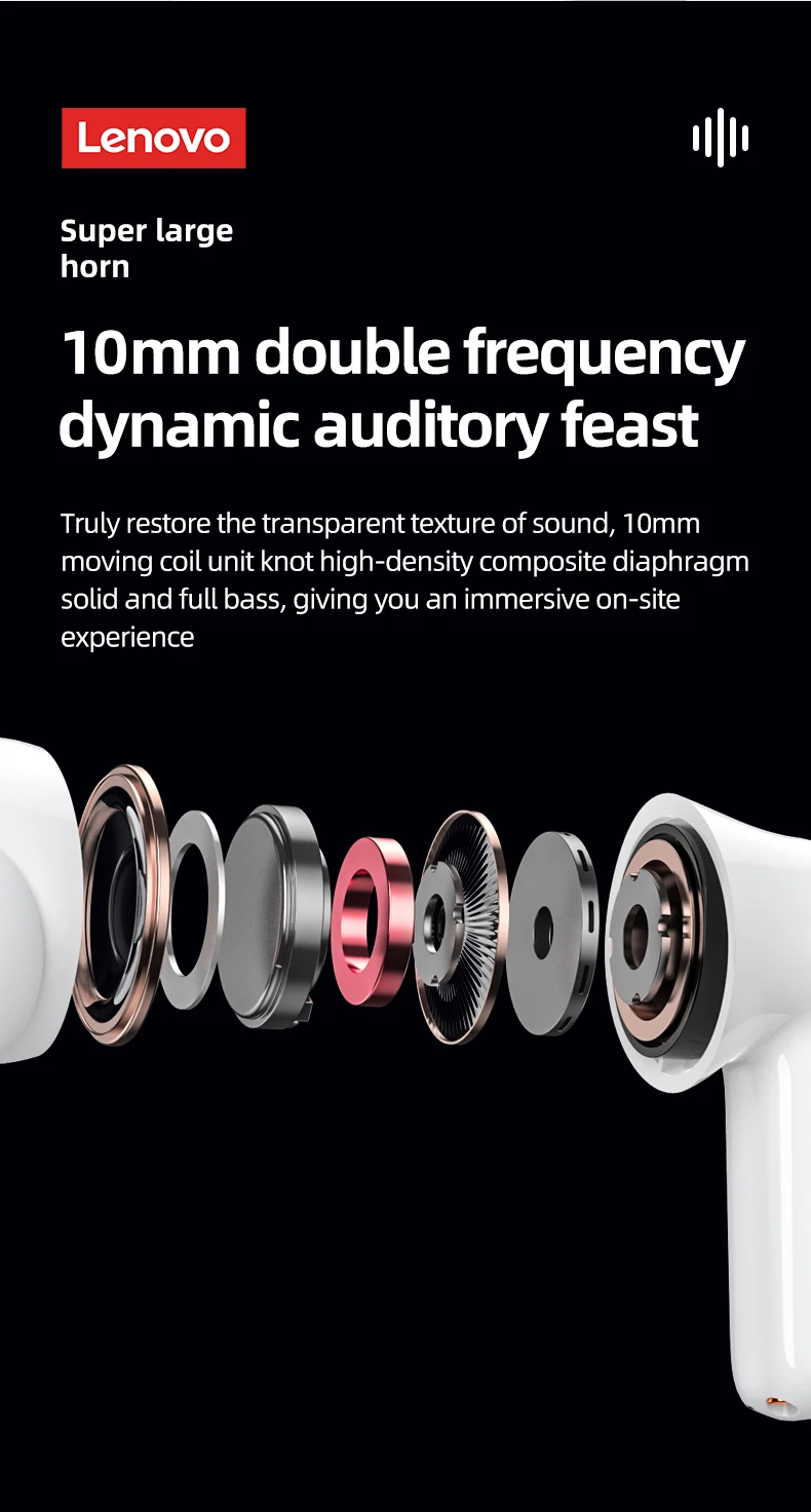 4. Con micrófonos duales, puede disfrutar de llamadas claras, y la unidad de bobina móvil de 10mm le brinda una experiencia inmersiva.