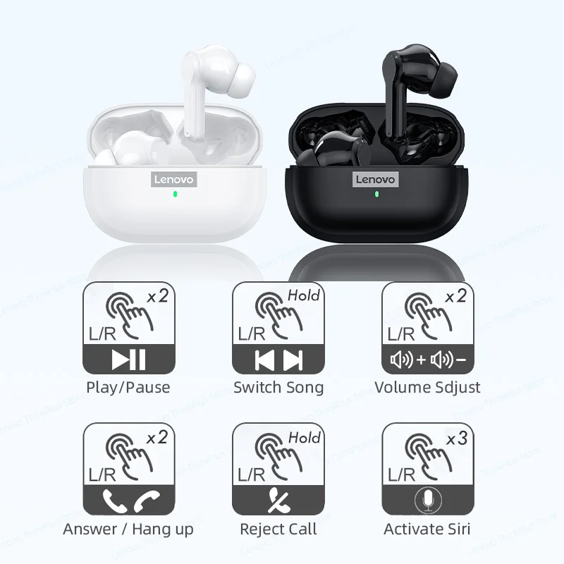 Comprar Lenovo-auriculares inalámbricos LP1S TWS con Bluetooth 5,0, cascos deportivos impermeables con micrófono para Android e IOS, originales