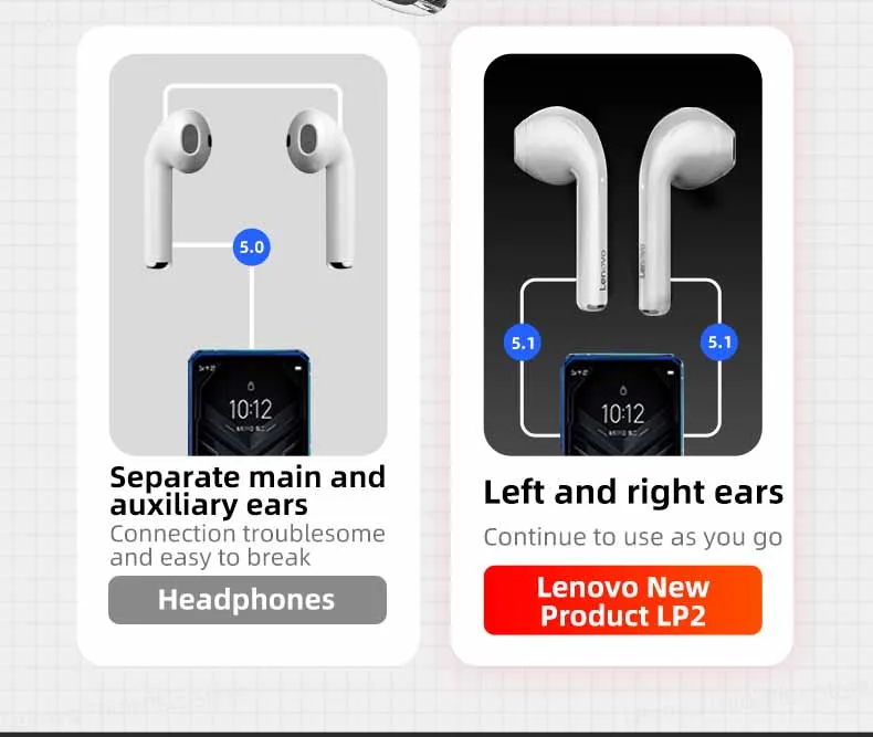 2023 nuevos auriculares Lenovo LP2 TWS inalámbricos Bluetooth HIFI reducción de ruido baja latencia auriculares deportivos para exteriores