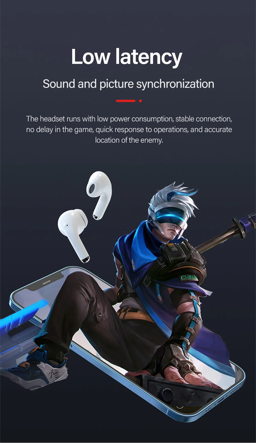 Equipado con un chip de procesamiento dual inteligente, después de que el teléfono móvil transmite la señal, los auriculares izquierdo y derecho pueden recibir al mismo tiempo, lo que reduce el retraso y la transmisión estable de la señal.