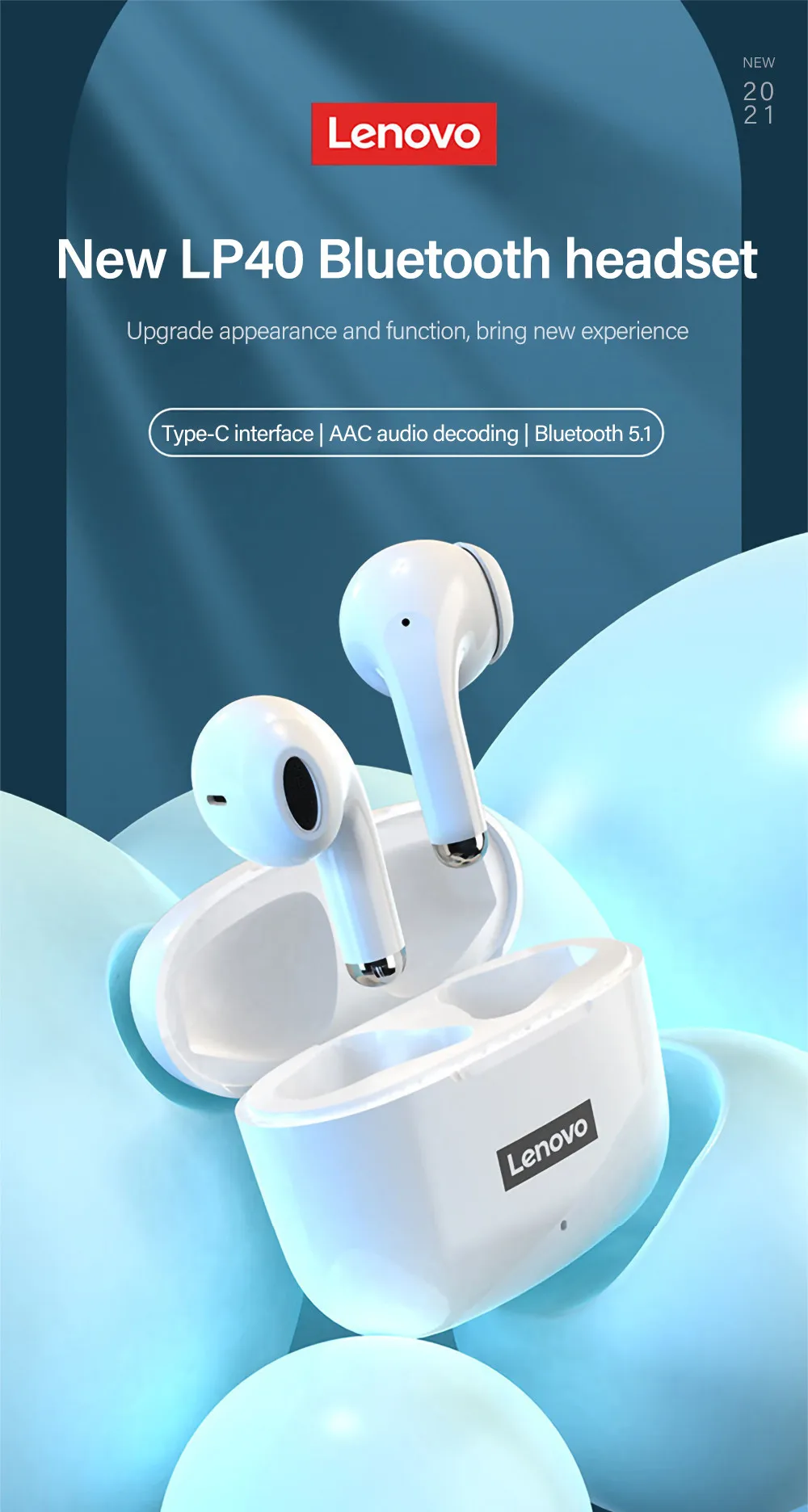 Comprar Lenovo-auriculares inalámbricos LP40 Pro, cascos con Bluetooth, Control táctil, micrófono de larga duración en espera, originales