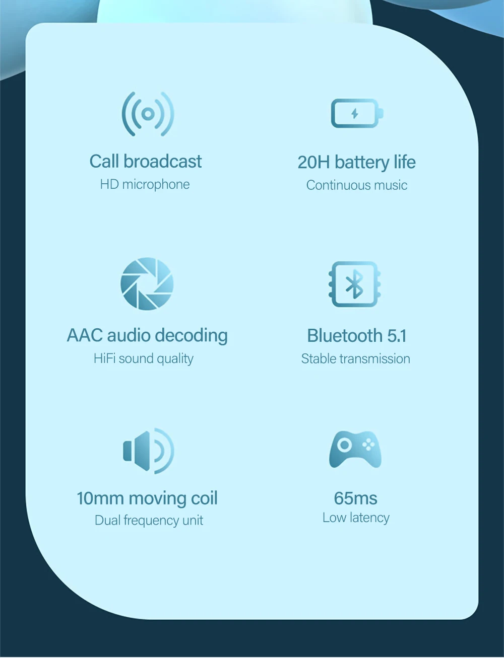 1. Chip Bluetooth 5,1 actualizado, la conexión es más estable y el retraso es menor, y es compatible con dispositivos Bluetooth