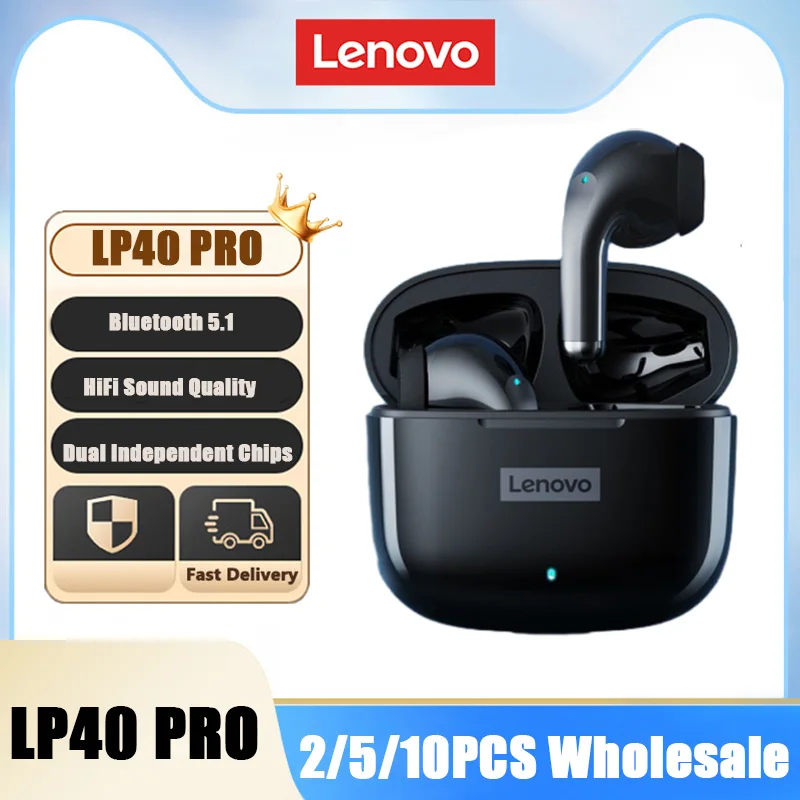 Comprar Lenovo-auriculares inalámbricos LP40 Pro TWS, audífonos deportivos con Bluetooth 5,1, reducción de ruido, Control táctil, 250mAH, 2/5/10 unidades
