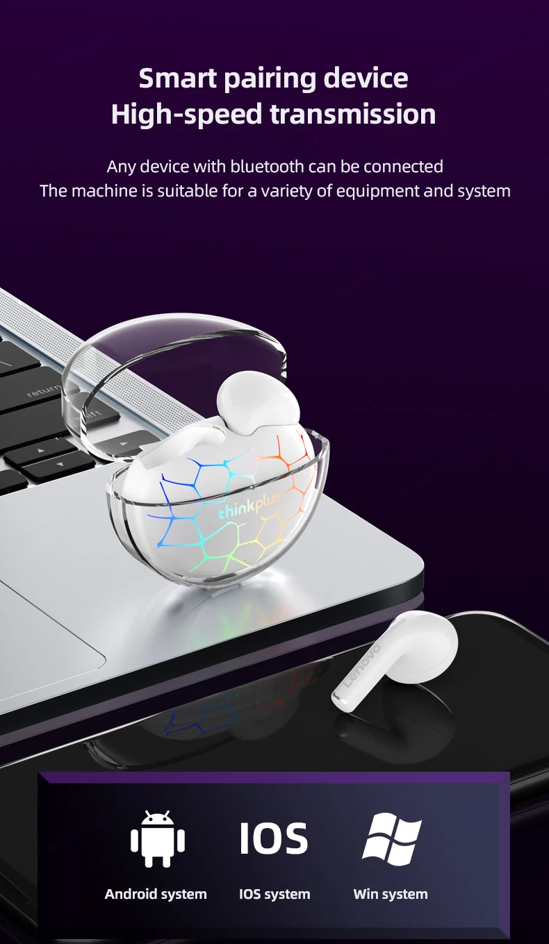 Comprar Lenovo-auriculares inalámbricos LP80 Pro TWS con Bluetooth 5,3, cascos deportivos RGB, HIFI Dual, reducción de ruido, baja latencia, para juegos