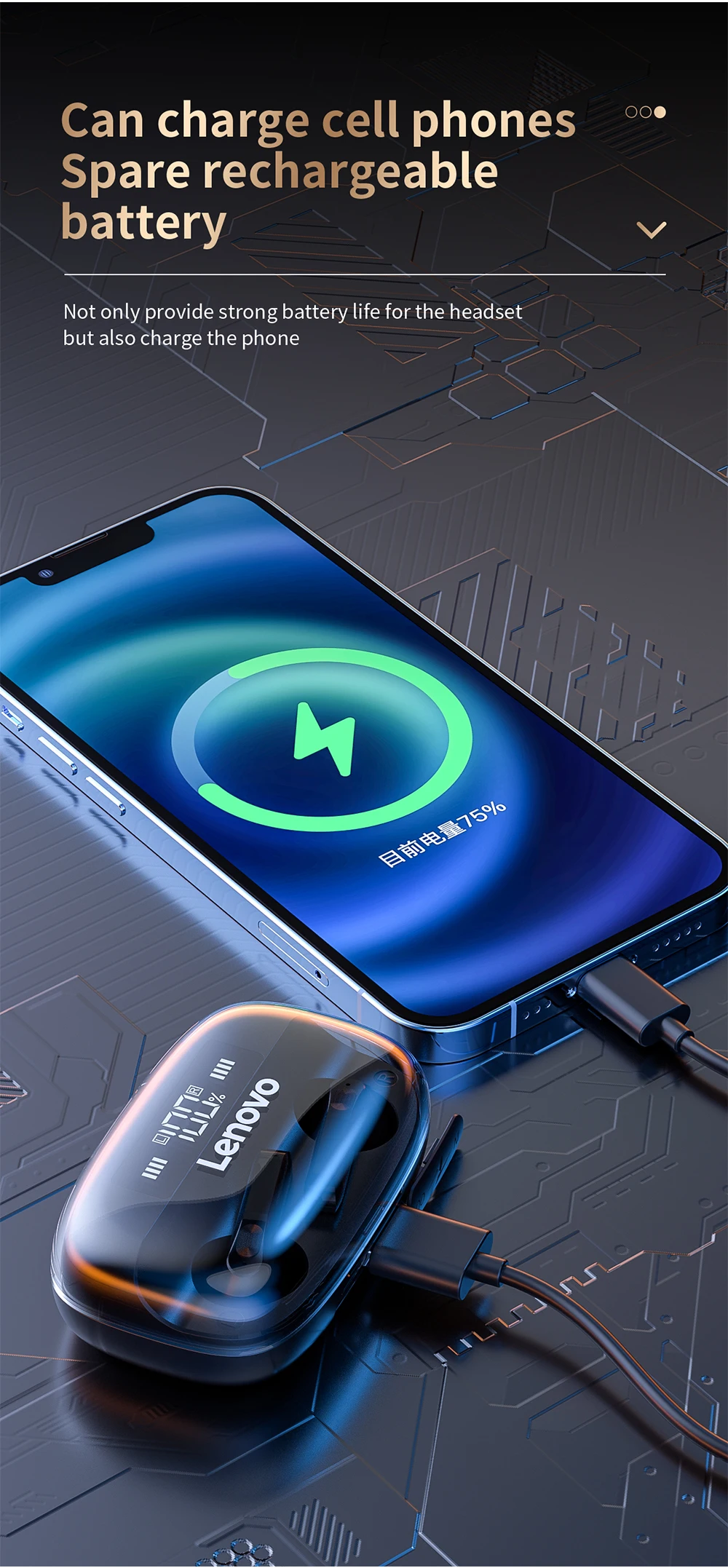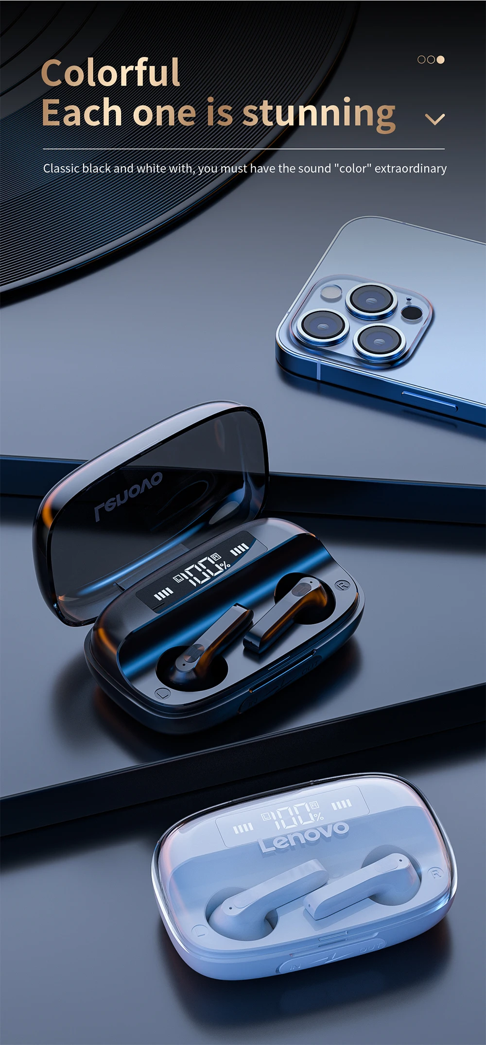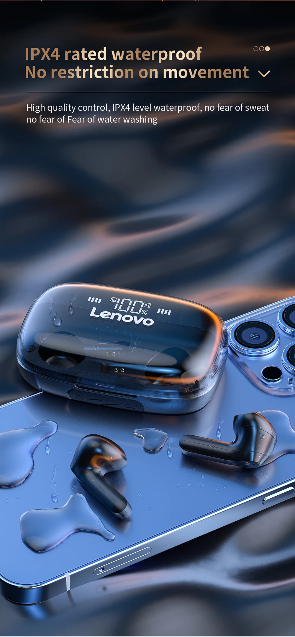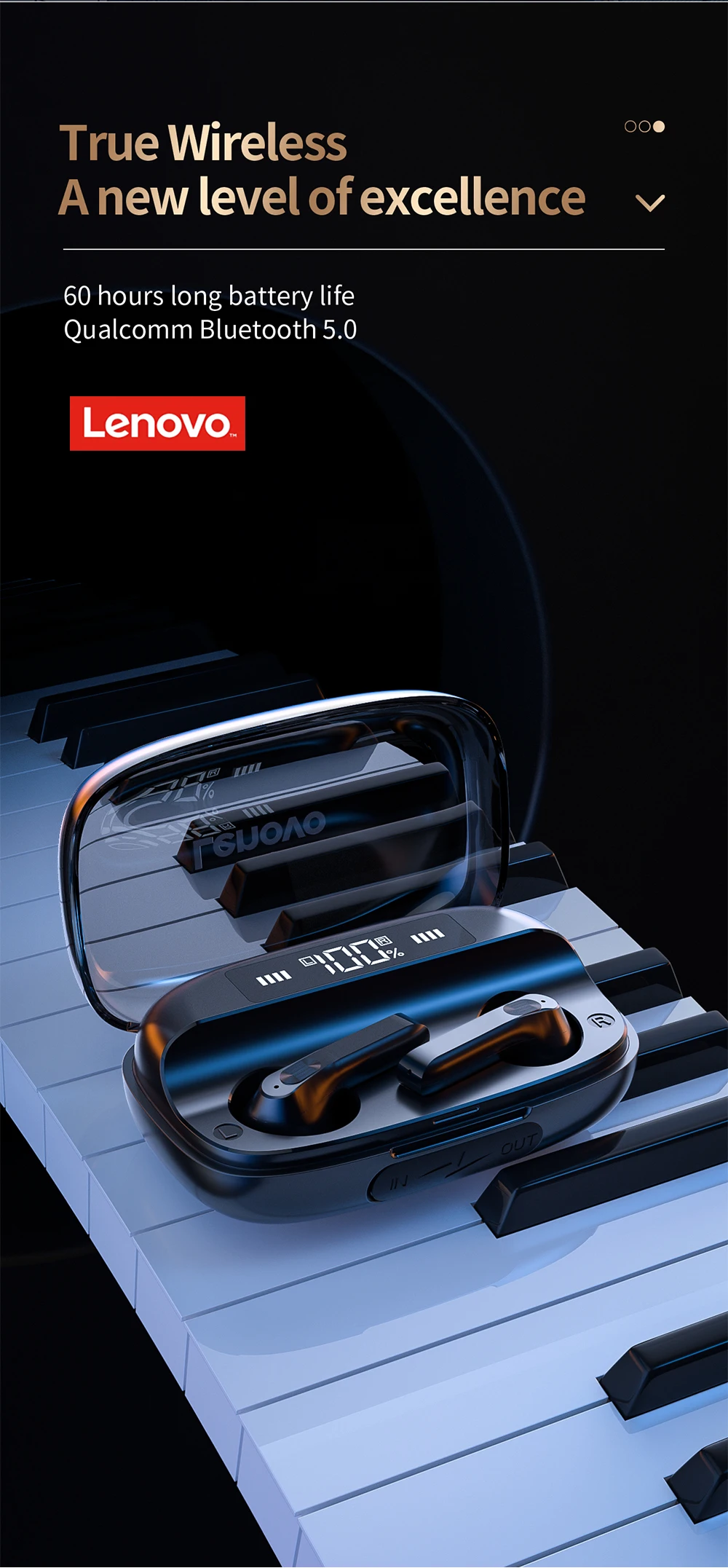 Comprar Lenovo-auriculares inalámbricos QT81 TWS, audífonos deportivos estéreo impermeables con micrófono, Bluetooth, llamada HD, 1200mAh