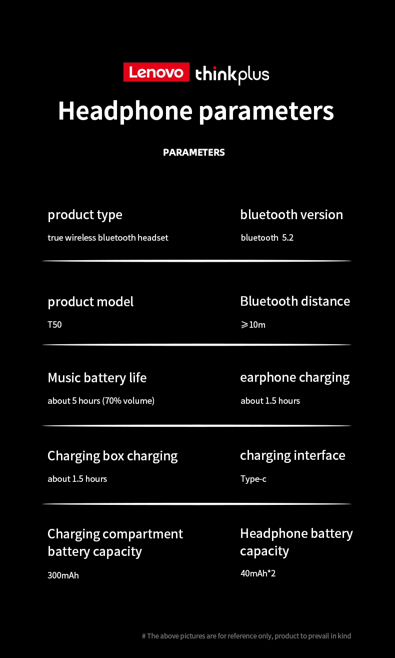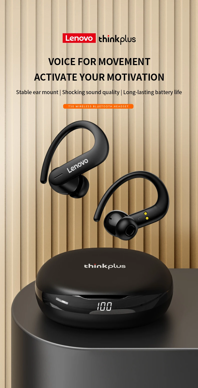 Comprar Lenovo-auriculares inalámbricos T50 con Bluetooth 5,2, cascos deportivos con reducción de ruido, HiFi, impermeables, con micrófono