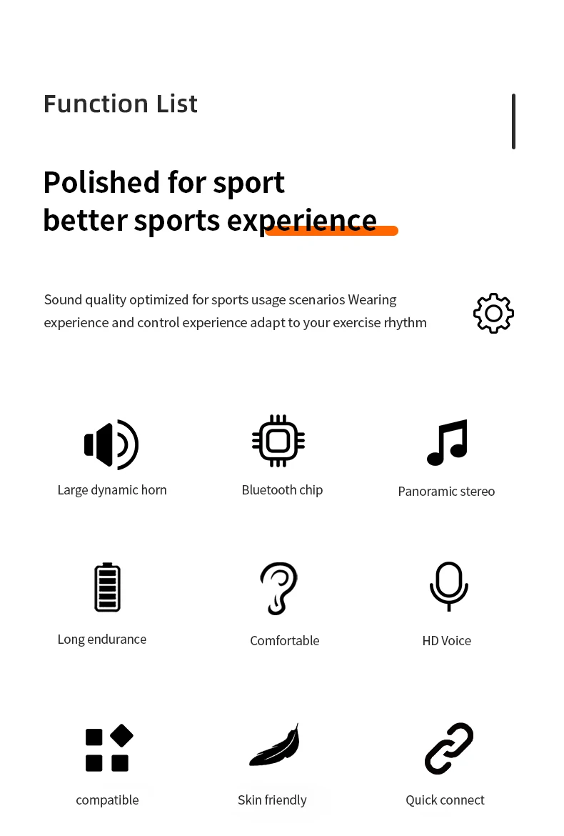 5. Función de control táctil popular, admite cambiar canciones, llamadas telefónicas y asistente de voz de llamada.