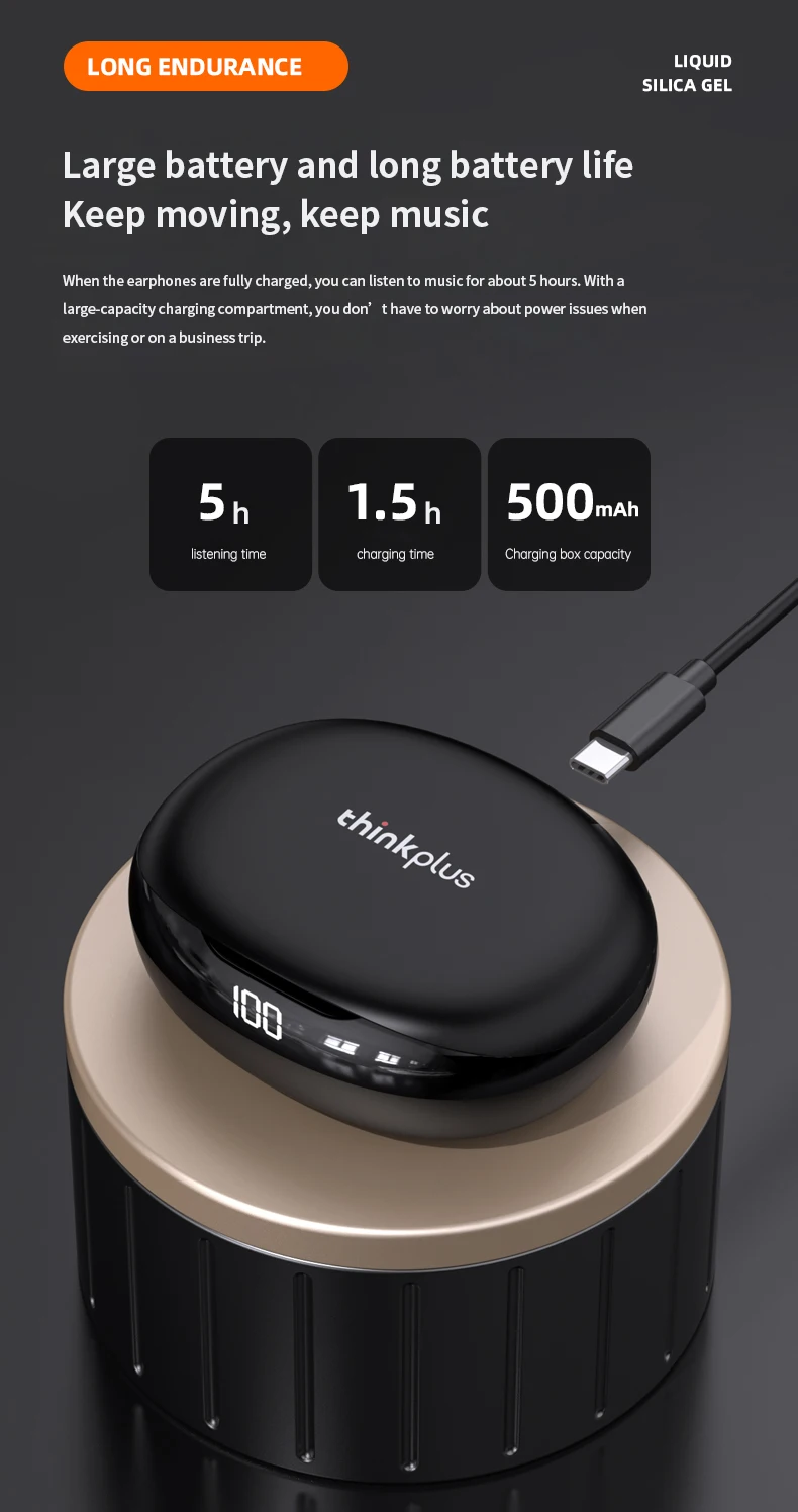 2. El estuche de carga de 500mAh puede cargar completamente 2 auriculares alrededor de 5 veces, ofrece más de 5 horas de música