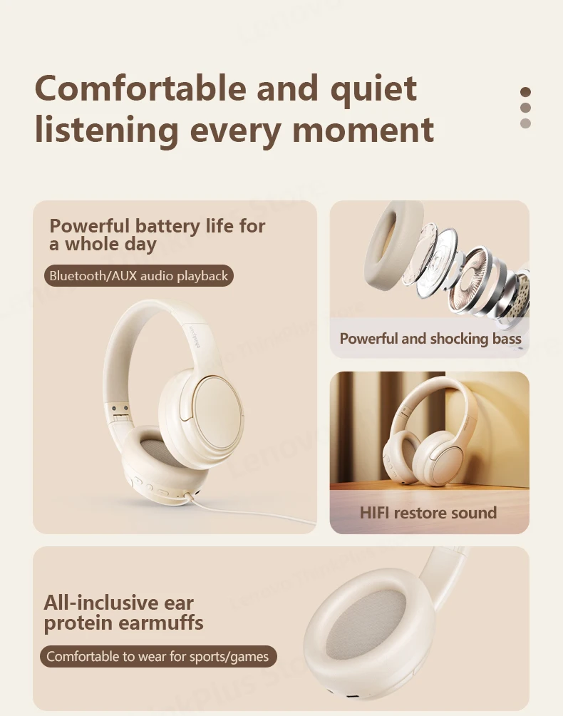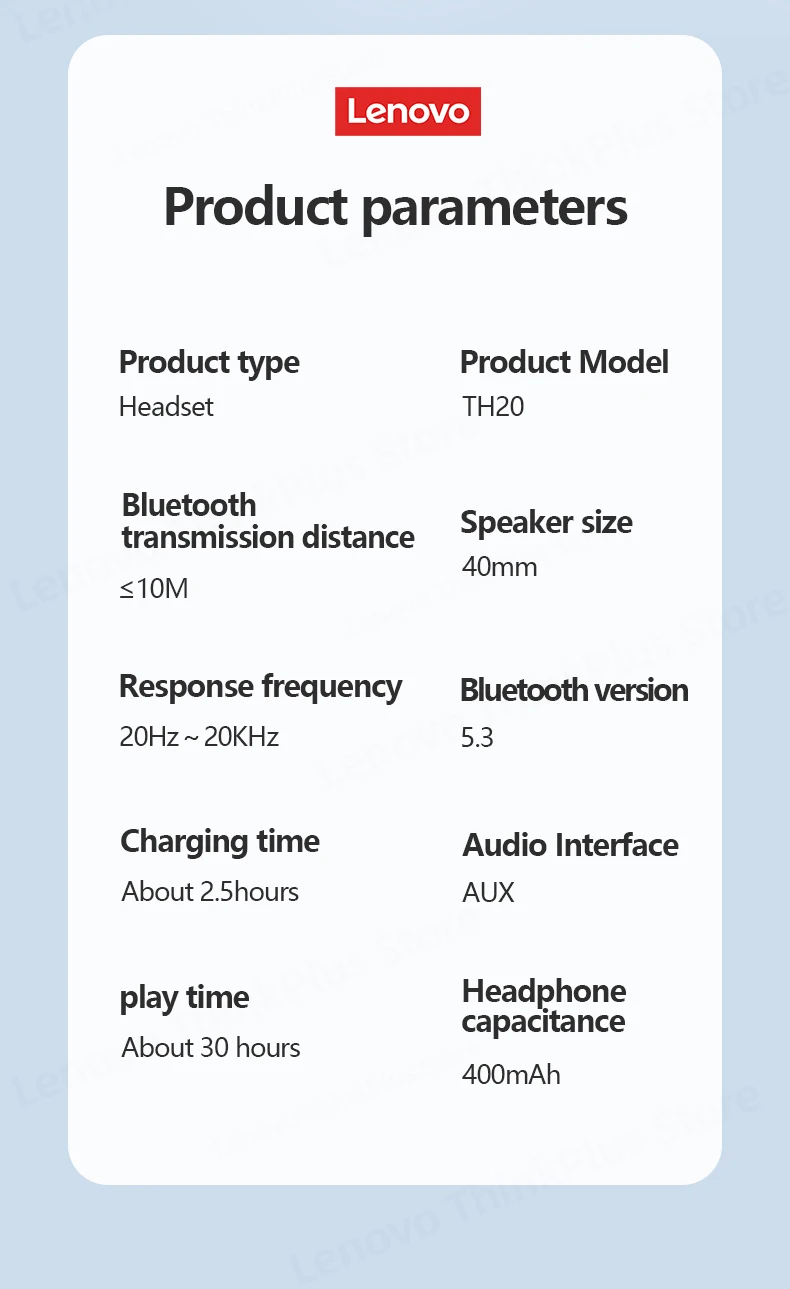 Comprar Lenovo-auriculares inalámbricos TH20 para videojuegos, audífonos originales con modo Dual, Bluetooth 5,3, plegables, deportivos, para música, novedad de 2023
