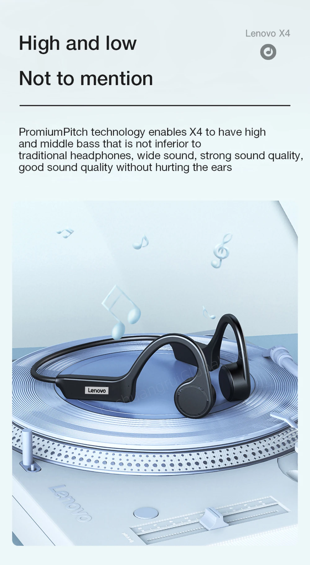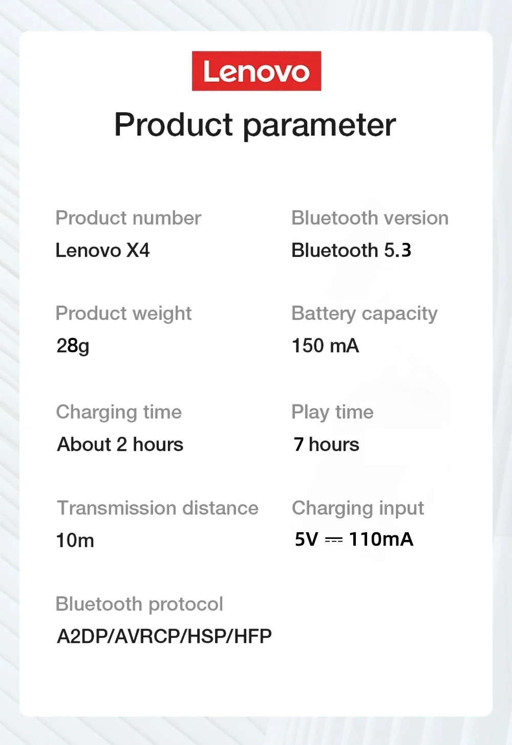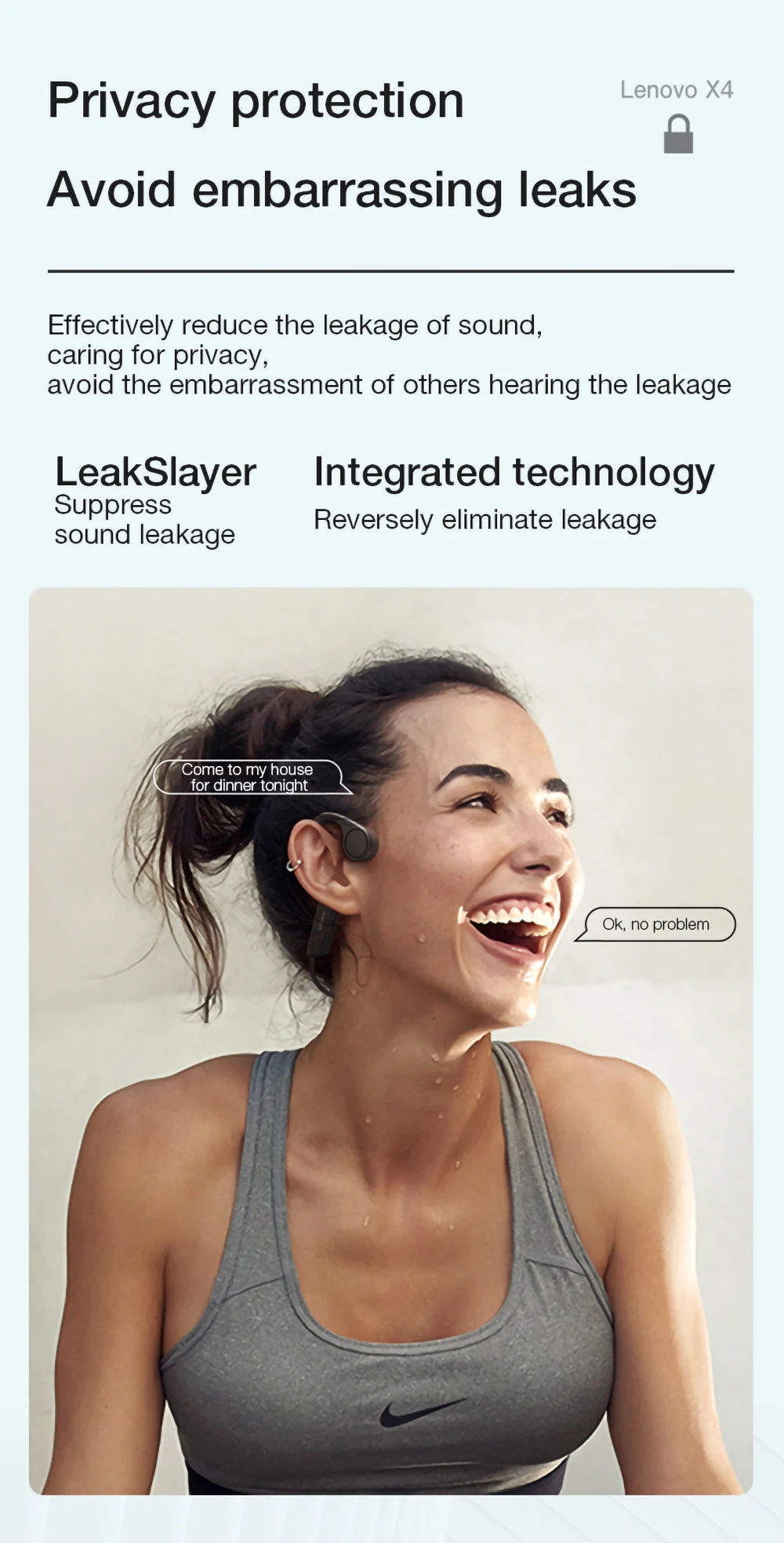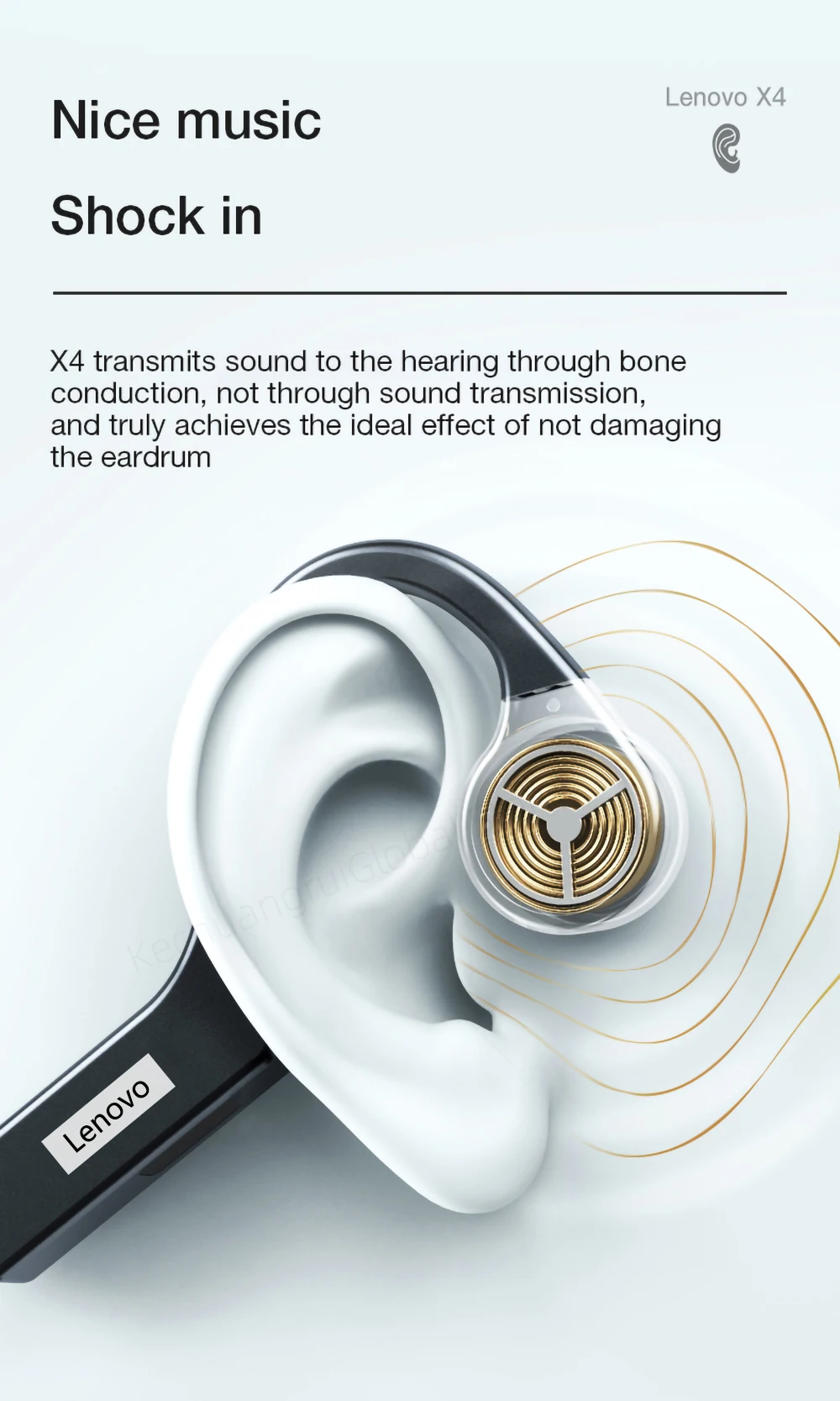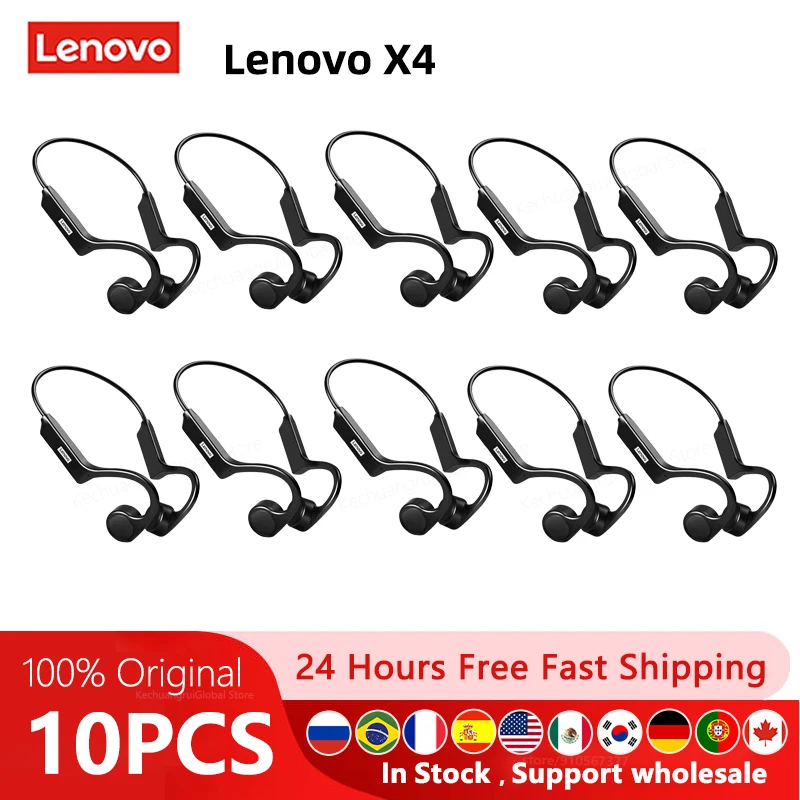 Comprar Lenovo-auriculares inalámbricos X4 originales, cascos de conducción ósea con Bluetooth, gancho para la oreja, Hifi, con micrófono, resistentes al agua, 10 Uds.