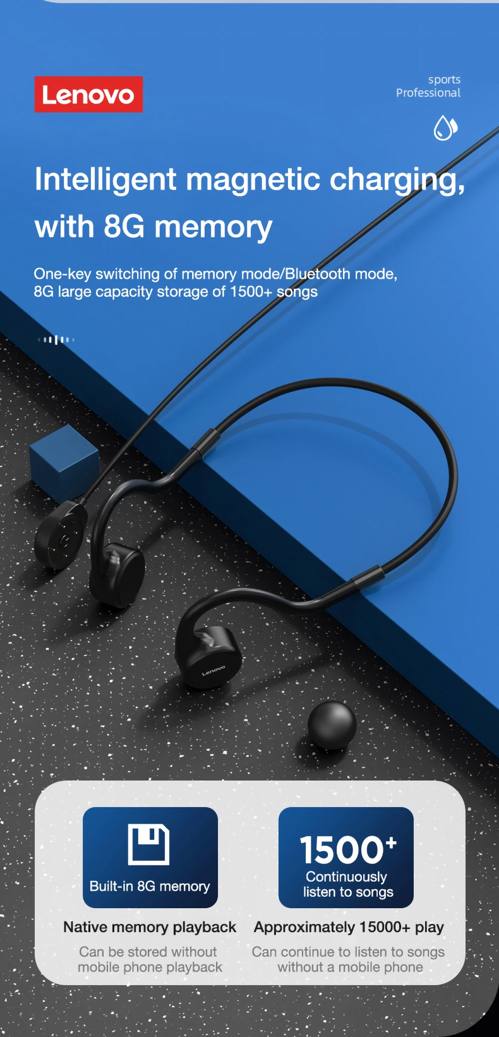 Comprar Lenovo-auriculares inalámbricos X5 Ture, cascos de conducción ósea, TWS, IPX8, impermeables, Bluetooth, deportivos, Hifi, estéreo, originales