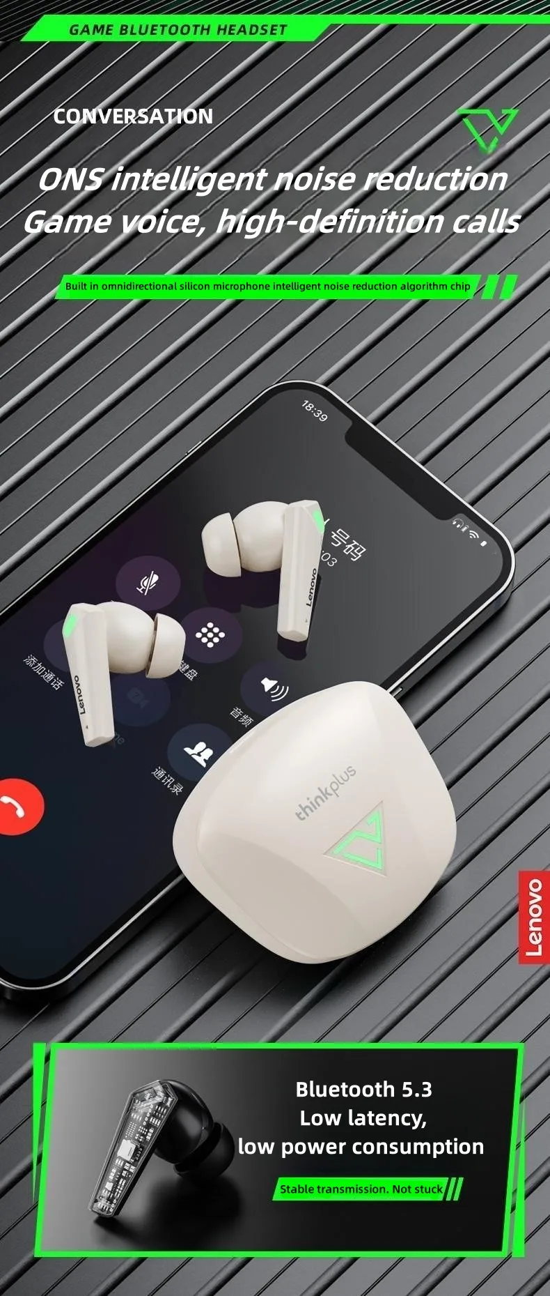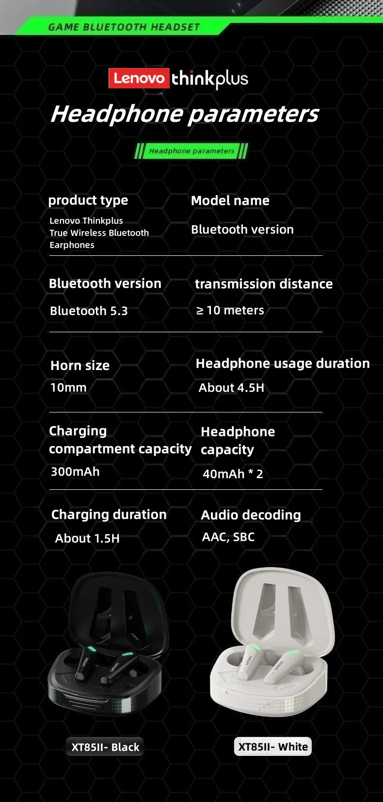 Comprar Lenovo-auriculares TWS inalámbricos XT85II, cascos originales con Bluetooth 5,0, estéreo, AAC, baja latencia, para juegos, con micrófono
