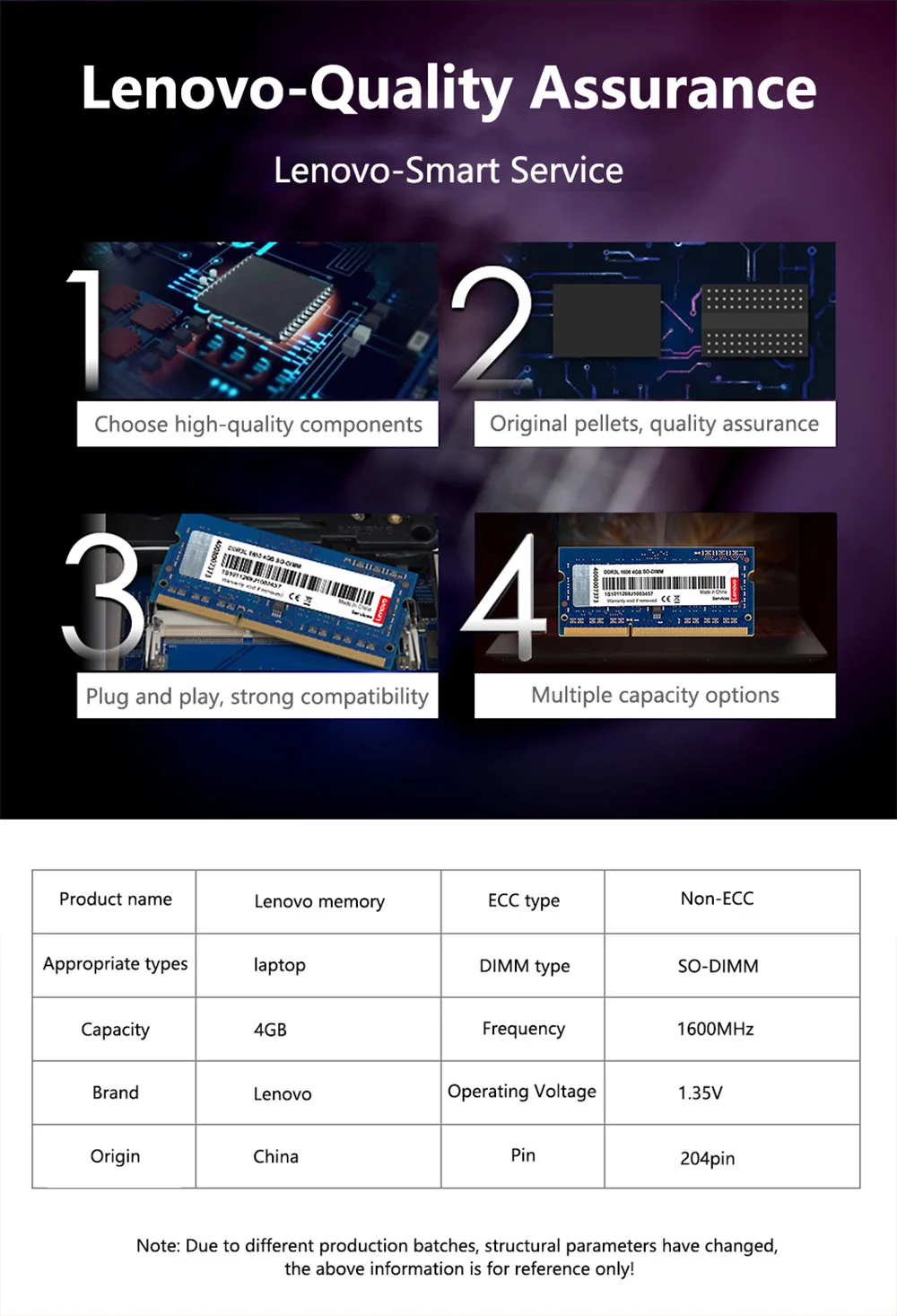 • RAM de alto rendimiento:El Lenovo DDR3L 1600MHz RAM es una solución de memoria de alto rendimiento, asegurando un funcionamiento suave y eficiente para su ordenador portátil.