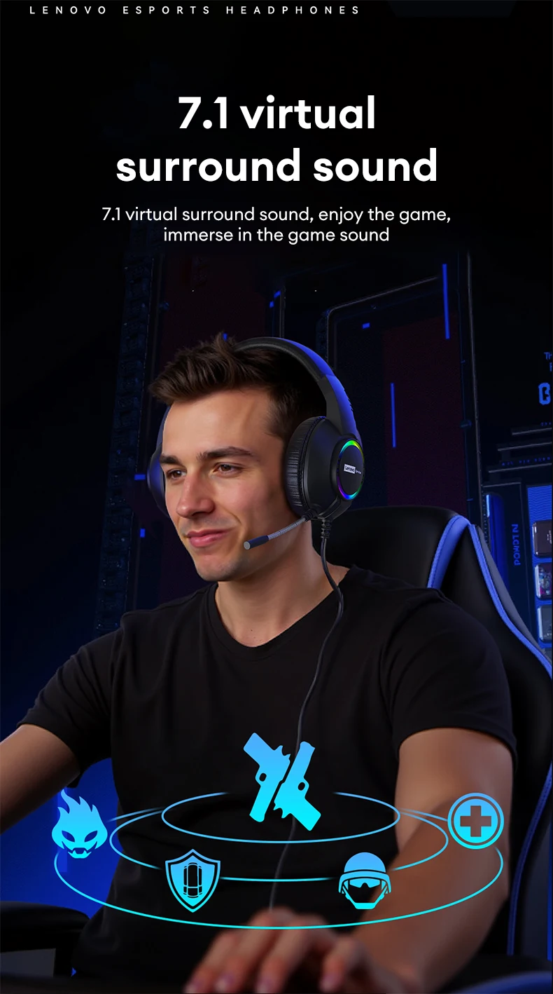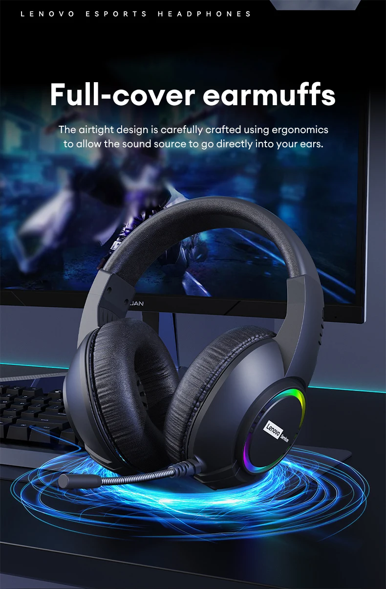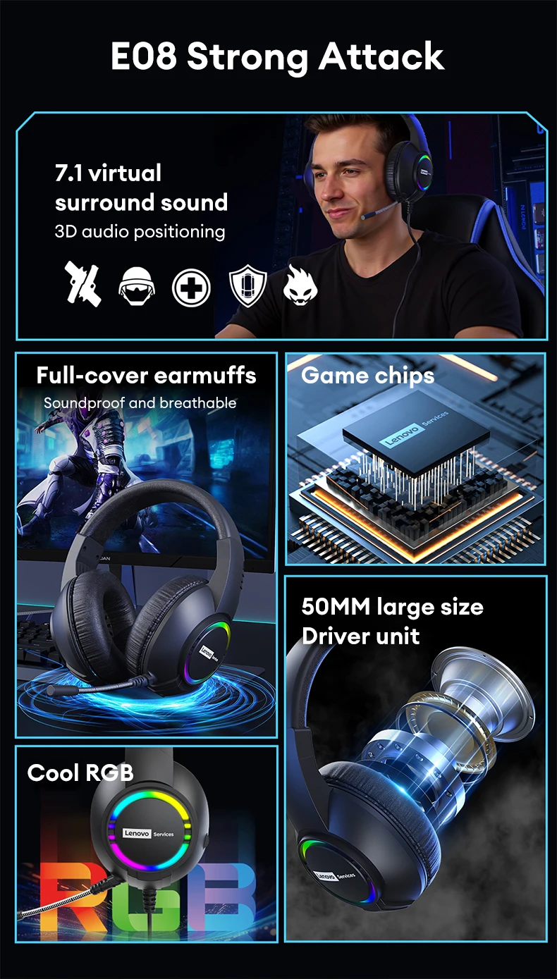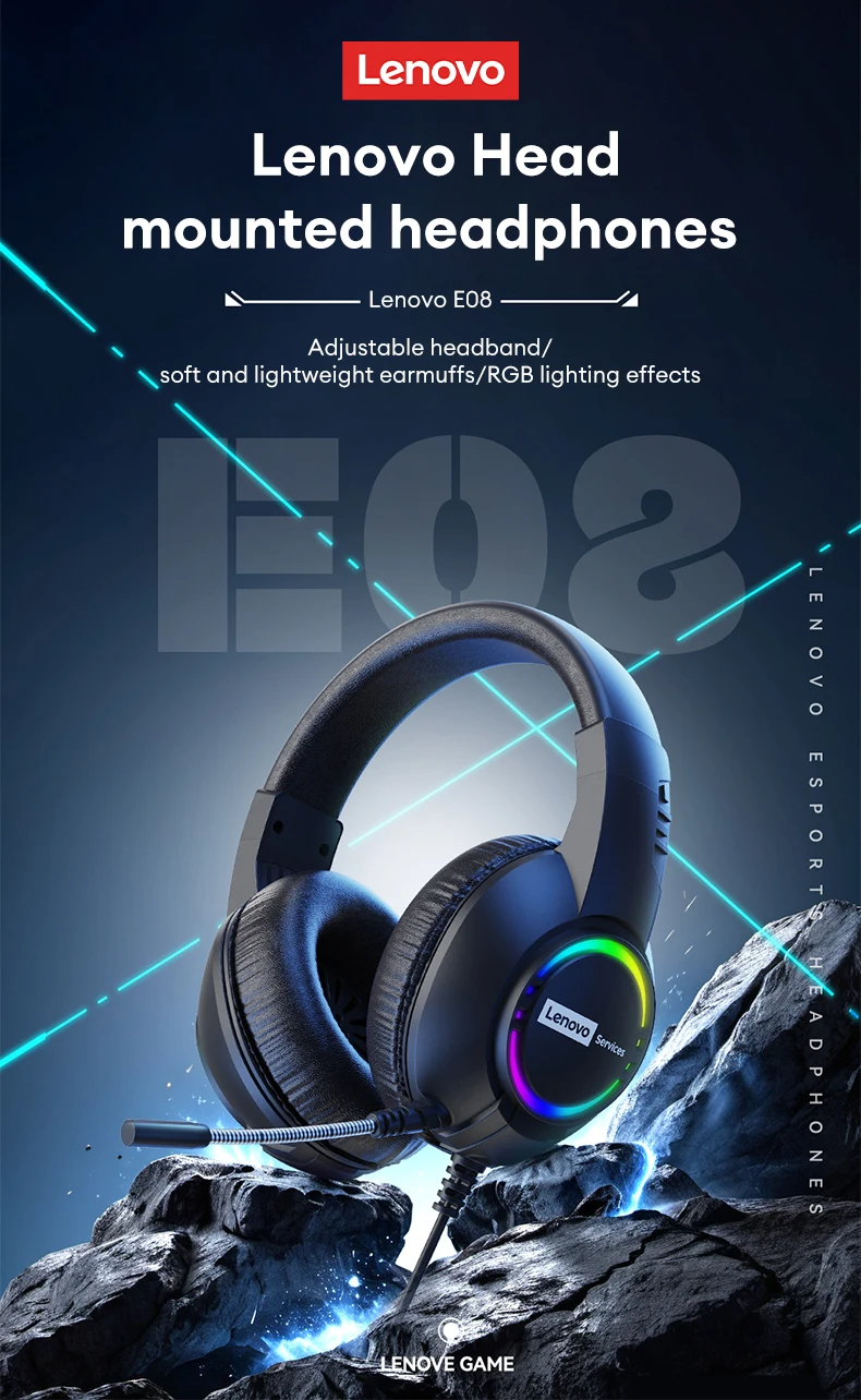 Comprar Lenovo E08 Esports Gaming Headset para PC portátiles sonido envolvente 7,1 conector de 3,5 mm y auriculares USB baja latencia de juego Earburds regalo