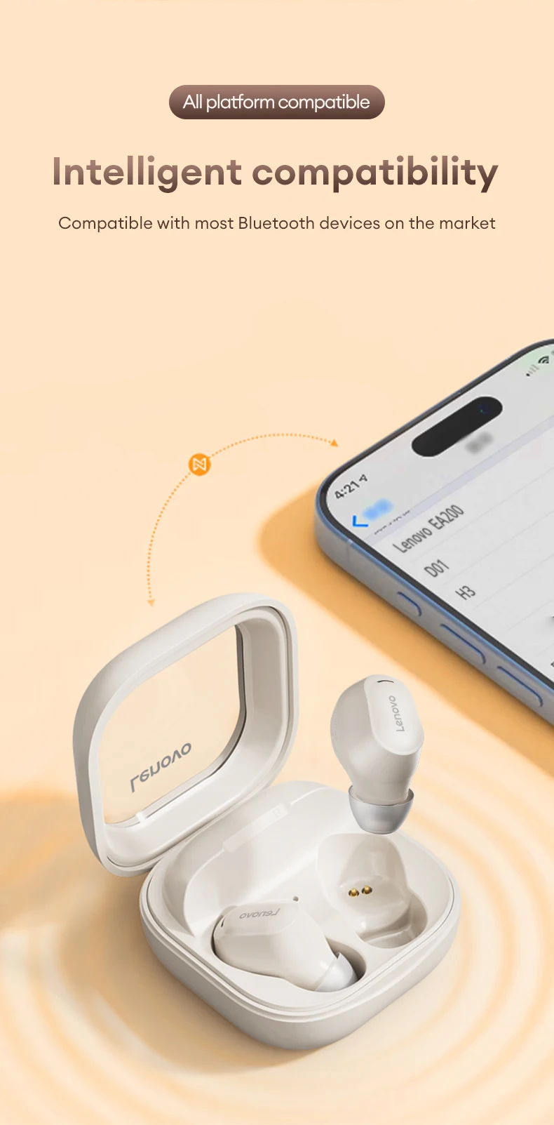 Comprar Lenovo EA200 nueva moda auriculares inalámbricos Bluetooth V5.4 auriculares para juegos de larga duración auriculares semi-in-ear de baja latencia
