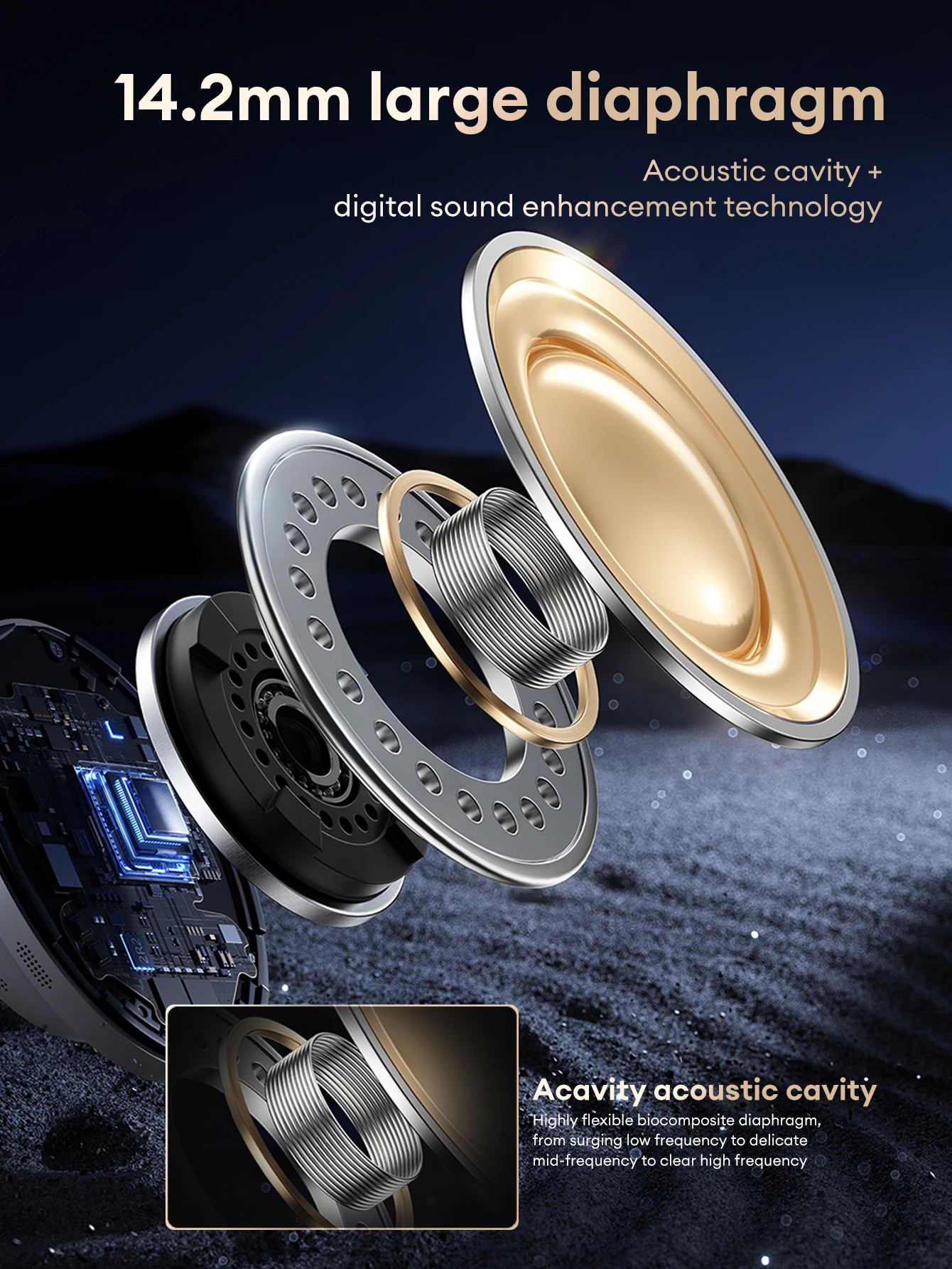 ⬤[14.2mm dual frequency unit with large moving coil]:Composite dual diaphragm, high frequency analysis