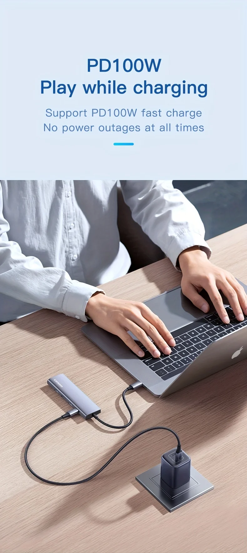 • Entrega de potencia de 100W :Cargue sus dispositivos de forma rápida y eficiente con la entrega de potencia de 100W, lo que le ahorra tiempo y molestia.
