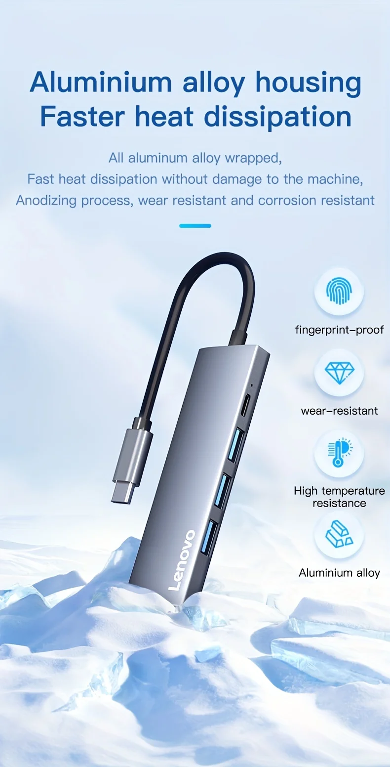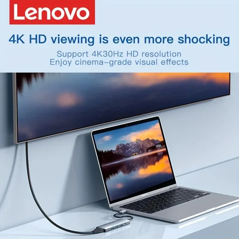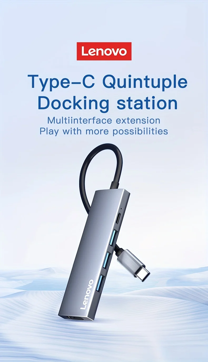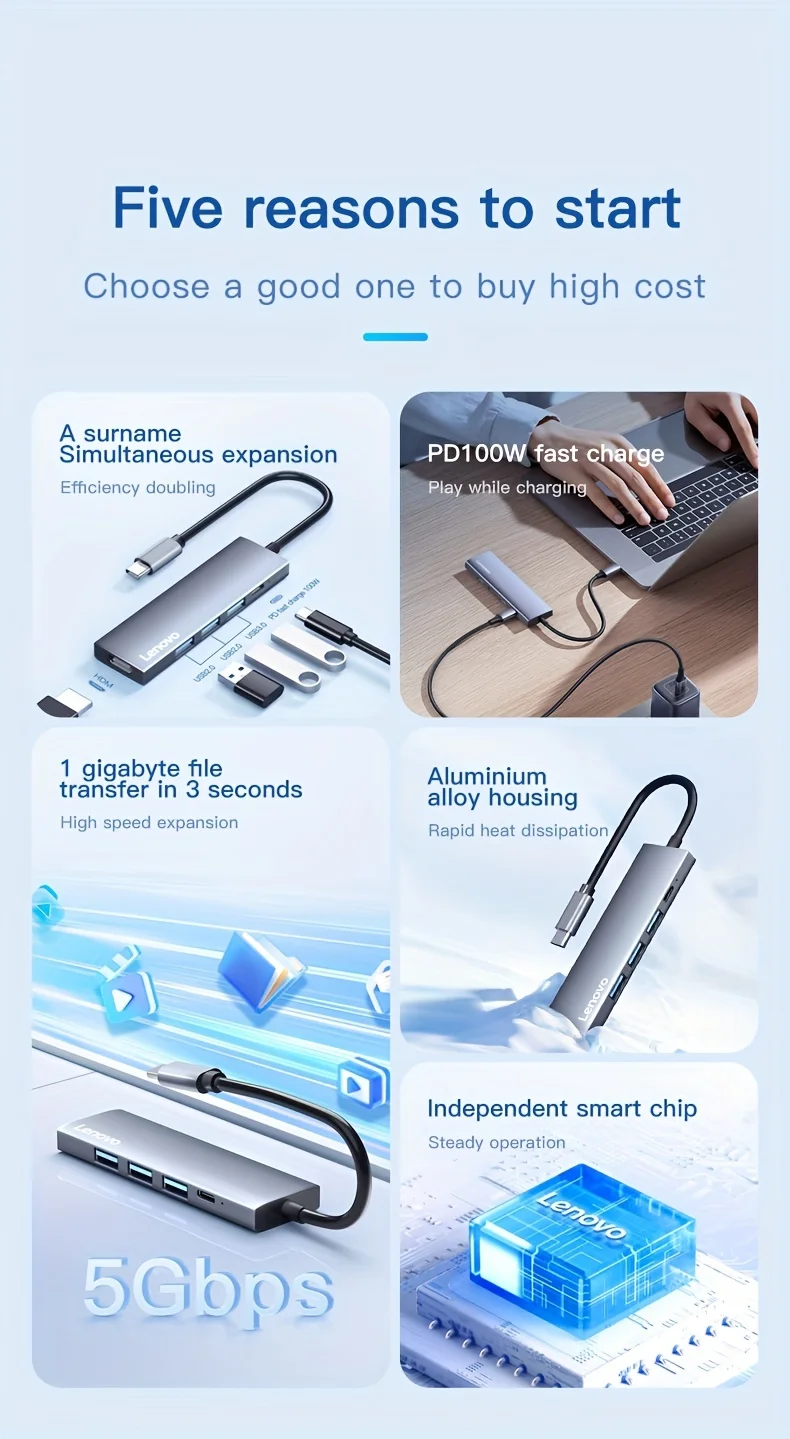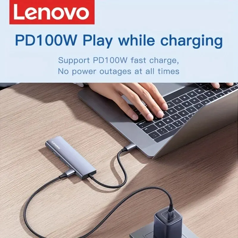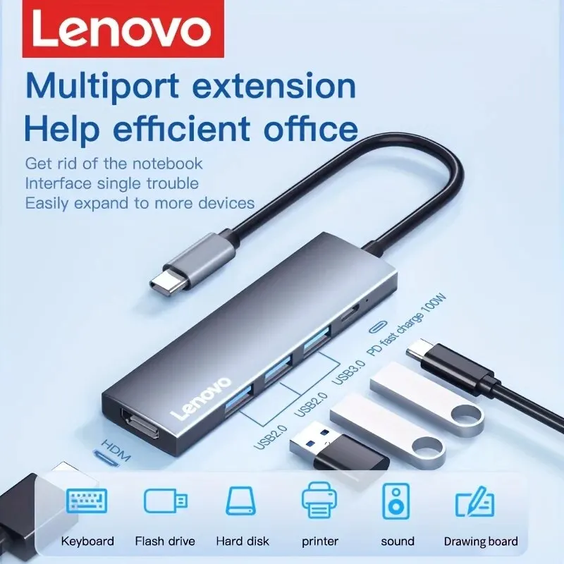 Comprar Lenovo-Hub USB C 5 en 1 con 4K HDMI, 100W, entrega de energía, 3 puertos de datos USB-A, adaptador multipuerto para MacBook Pro/Air