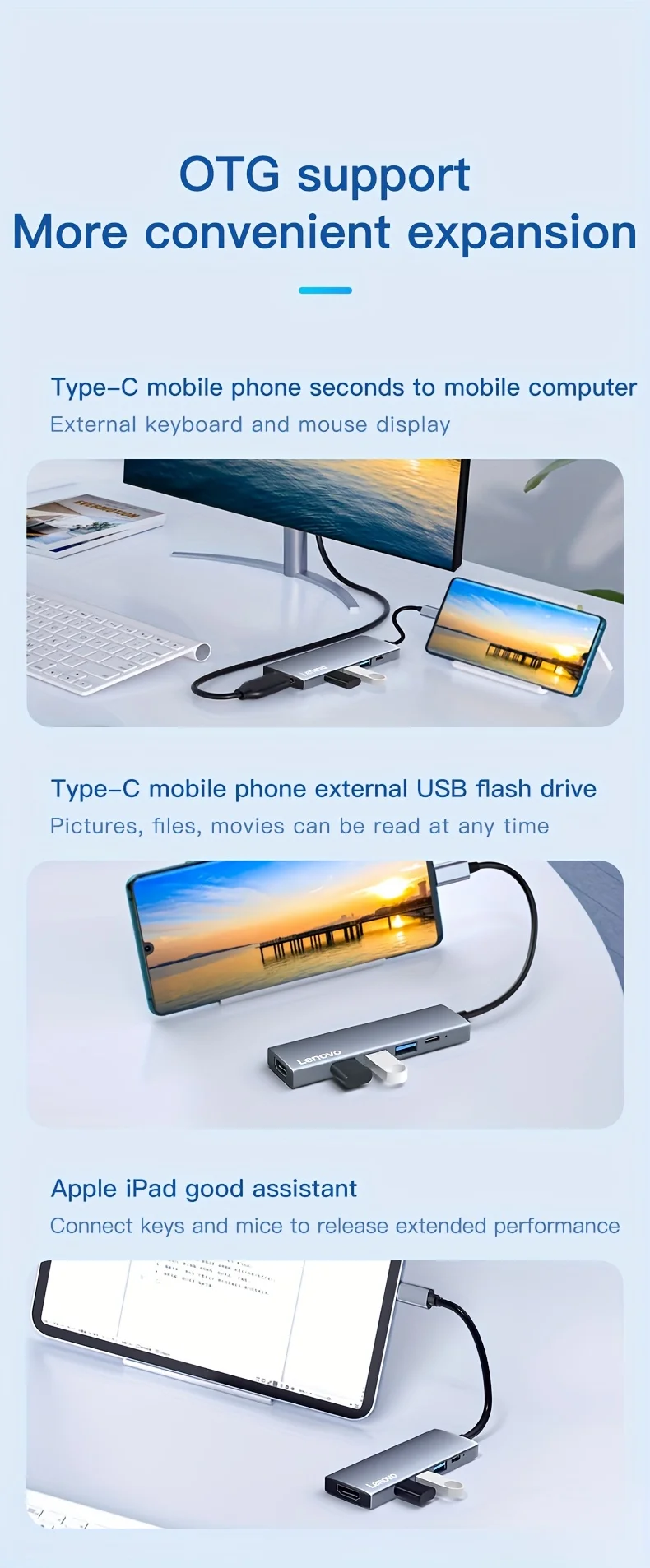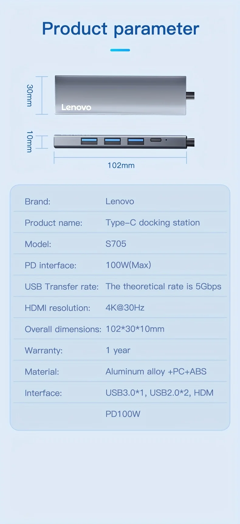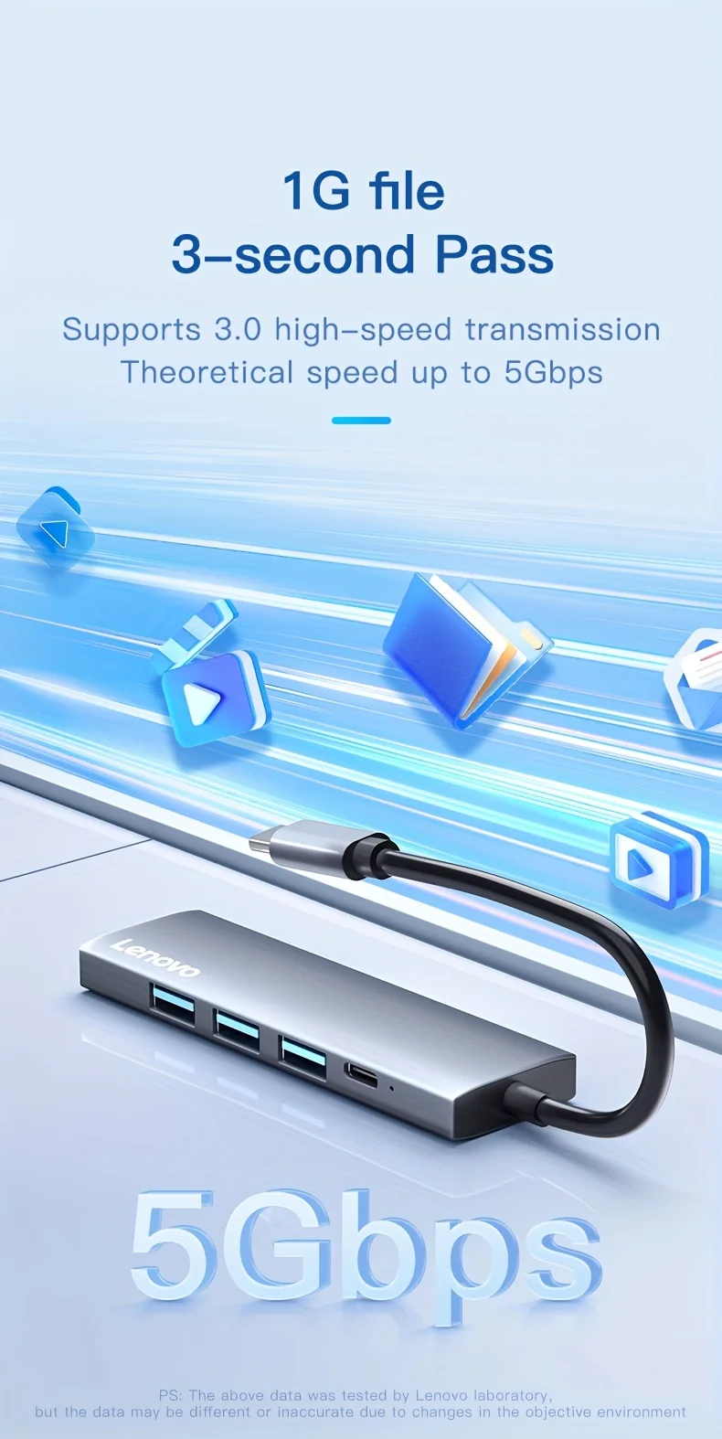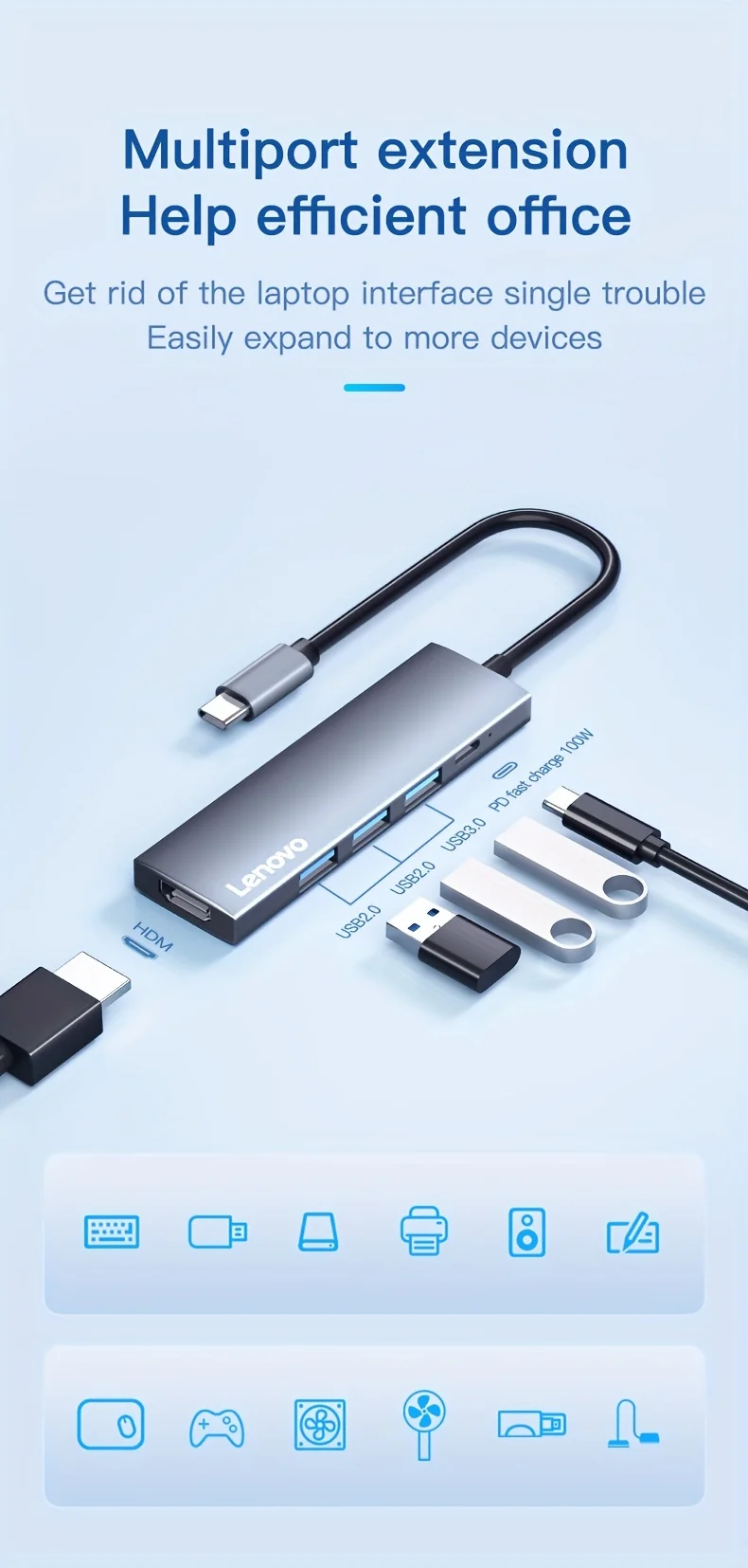 Comprar Lenovo-Hub USB C 5 en 1 con 4K HDMI, 100W, entrega de energía, 3 puertos de datos USB-A, adaptador multipuerto para MacBook Pro/Air