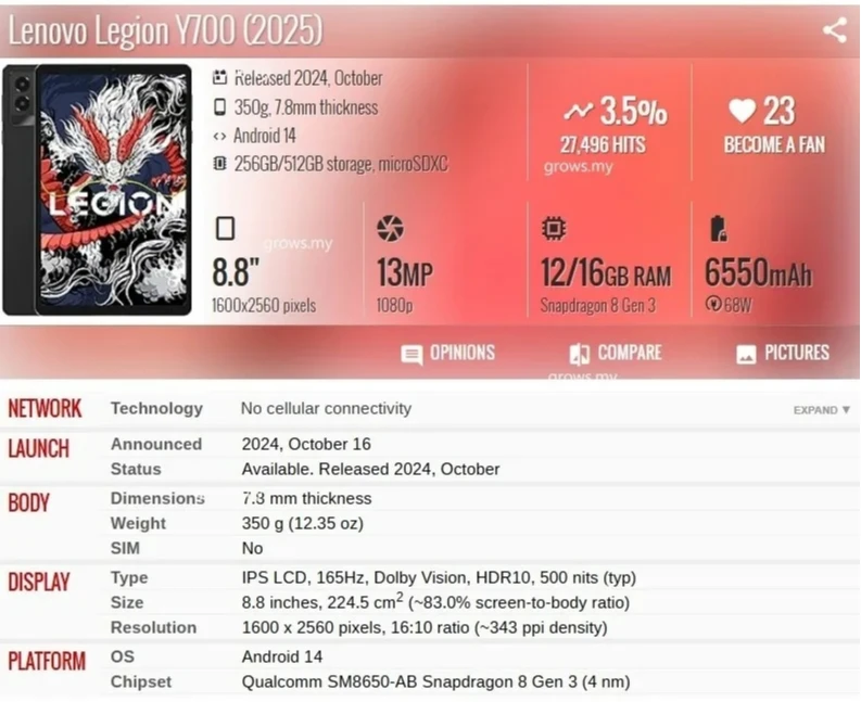 Estuche para bolsaPara Lenovo LEGION Y7003da generación 8,8 pulgadas 2025 (TB321FU)205 mm x 155 mm x 15 mm;