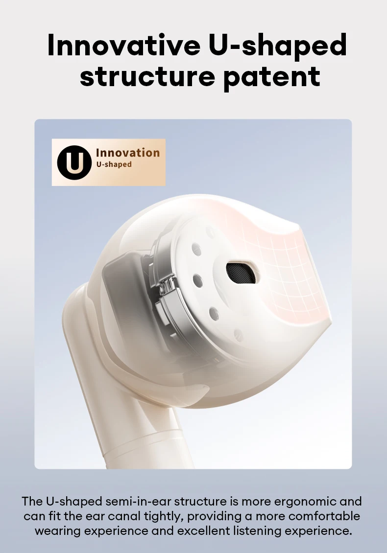 5.[Diseño de luz de plumas 3g]:3g ultraligero + ergonómico en forma de U abraza los contornos de las orejas para una comodidad similar a la de una nube.Las almohadillas de silicona líquida de grado médico evitan la fatiga durante el uso prolongado y se bloquean de forma segura durante los entrenamientos.