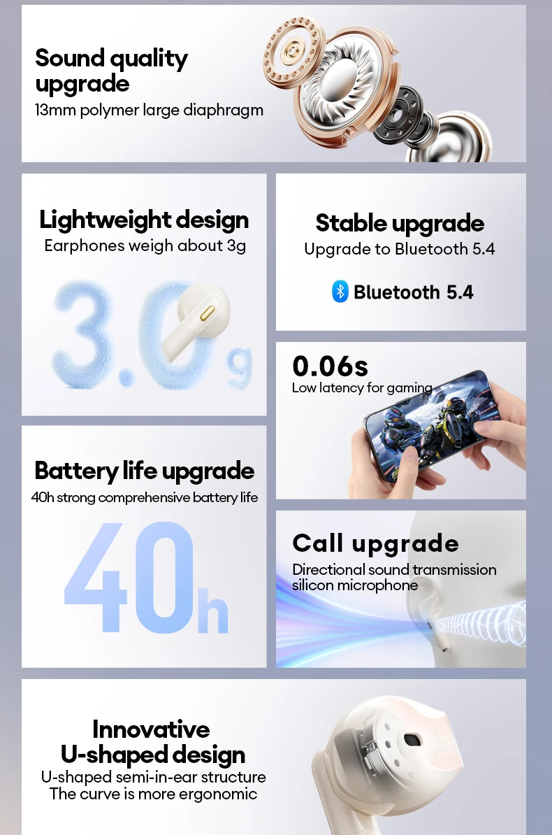 1.[[Bluetooth 5.4 rápido]:El chip Bluetooth 5.4 actualizado aumenta la transmisión en un 50% para un emparejamiento instantáneo + estabilidad antiinterferencias.Garantiza una sincronización audiovisual perfecta en desplazamientos concurridos o entornos de múltiples dispositivos.