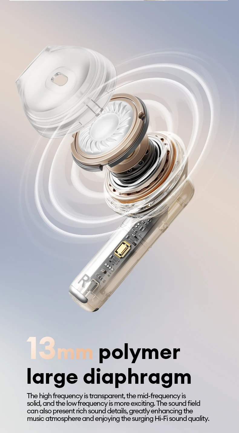 3.[Cámara acústica biónica]:La cavidad patentada inspirada en una ballena profundiza la resonancia de los graves y aclara los medios/altos.La optimización del flujo de aire bioacústica replica la claridad del concierto en vivo con separación de instrumentos en capas.