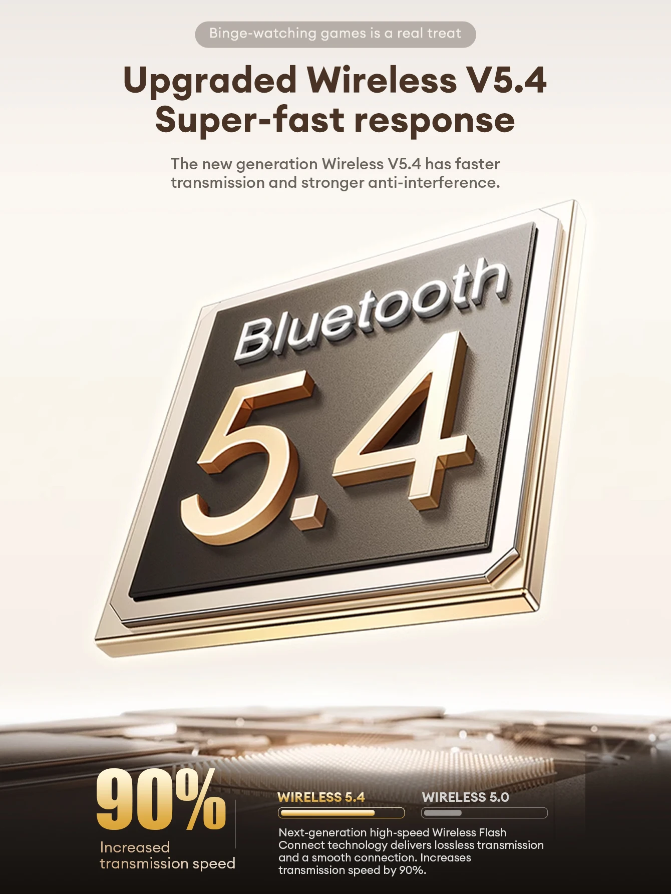 BT 5.4 actualizado con una transmisión un 90% más rápida, una antiinterferencia más fuerte y una conexión flash para un audio fluido y sin pérdidas.