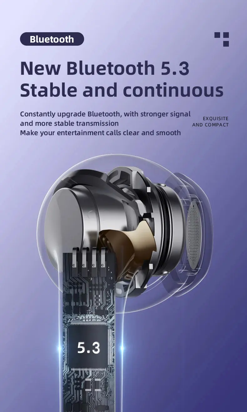 1. chip Bluetooth 5,3 actualizado, la conexión es más estable y el retraso es menor, y es compatible con dispositivos Bluetooth.