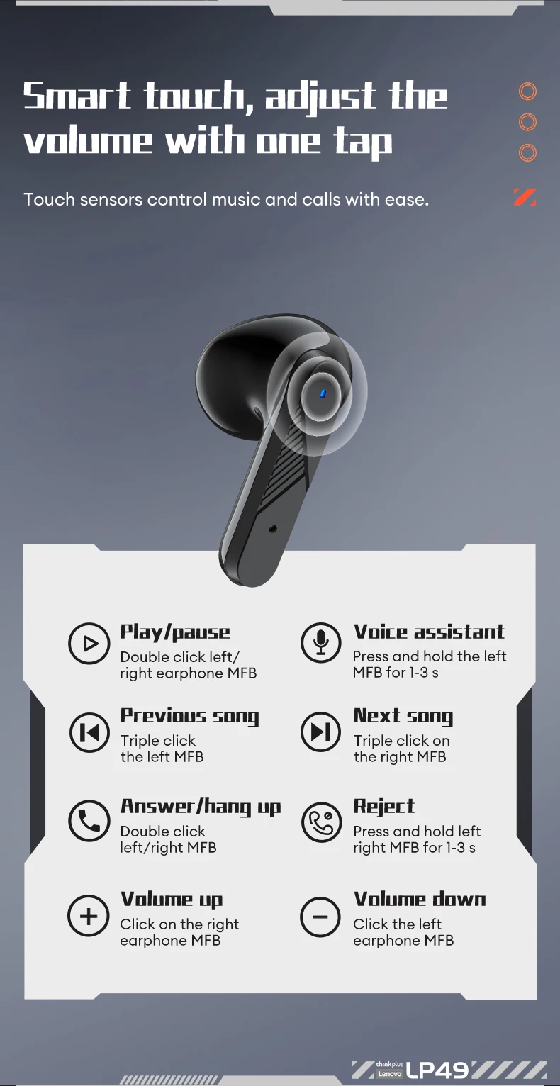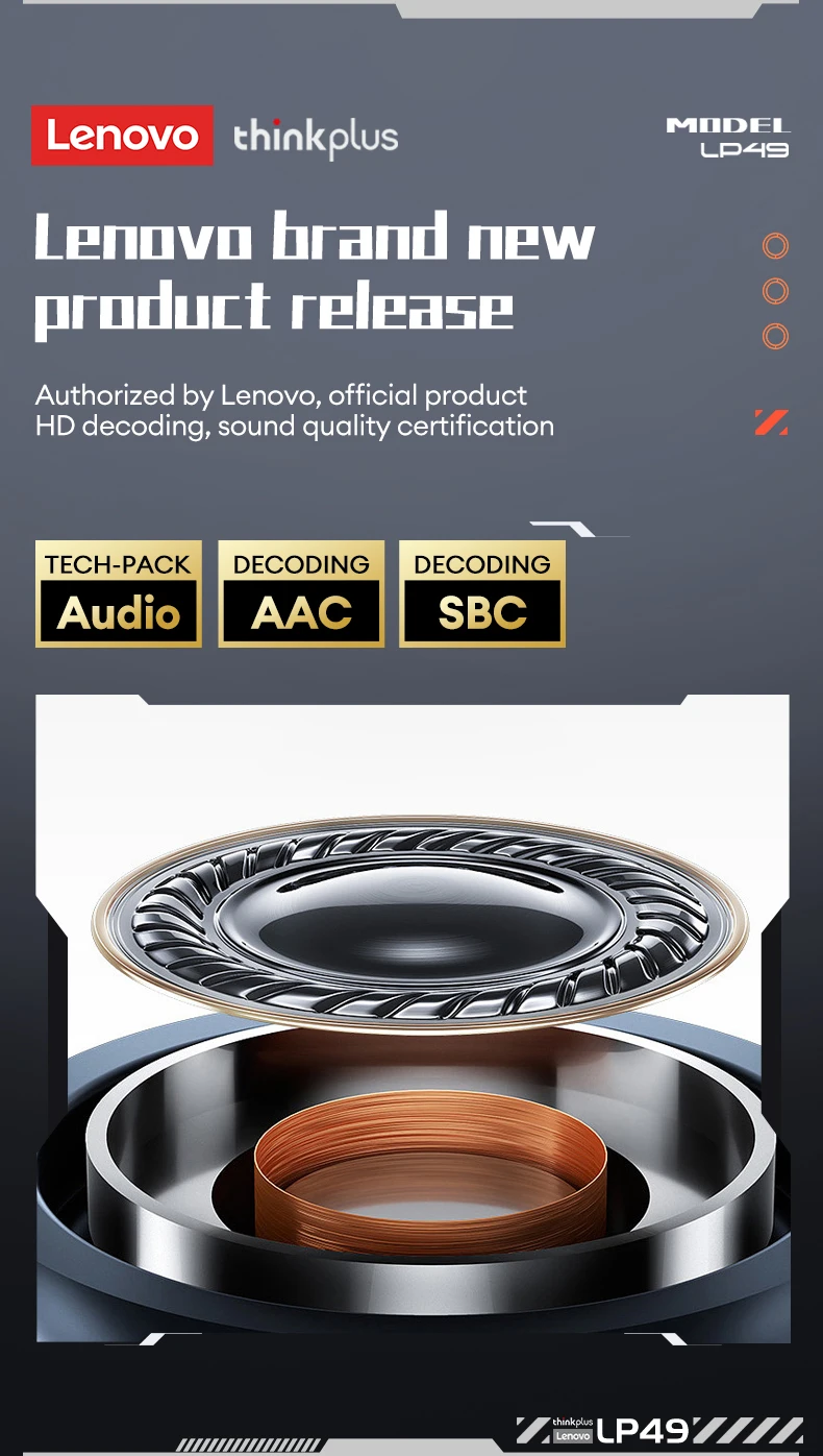 Lenovo LP49 TWS Bluetooth 5.4 Headset