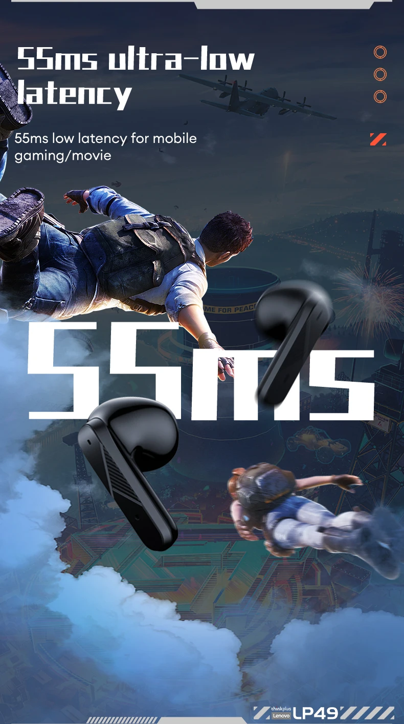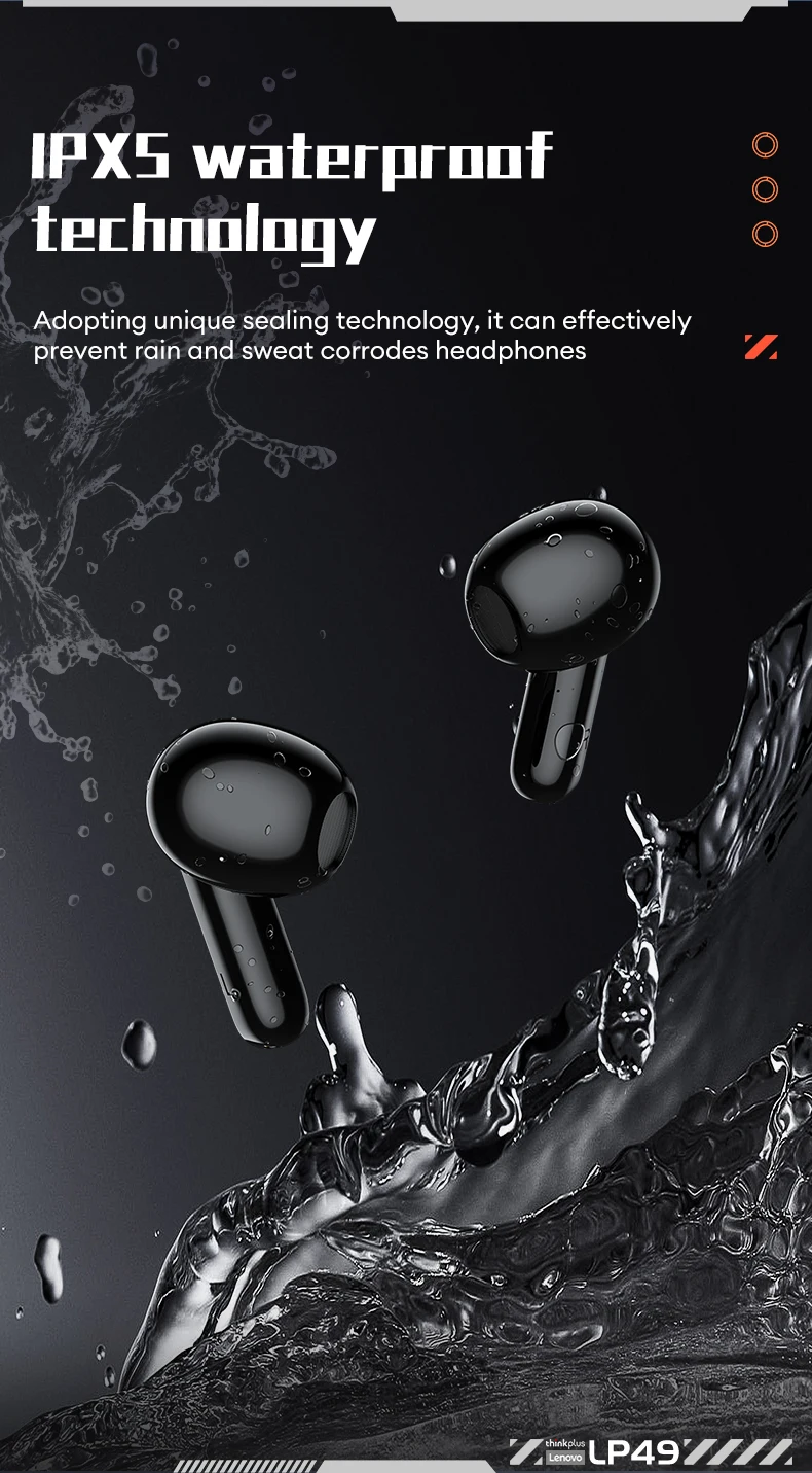 Comprar Lenovo LP49 auriculares inalámbricos Bluetooth con cancelación de ruido auriculares para juegos batería de larga duración auriculares deportivos impermeables con micrófono