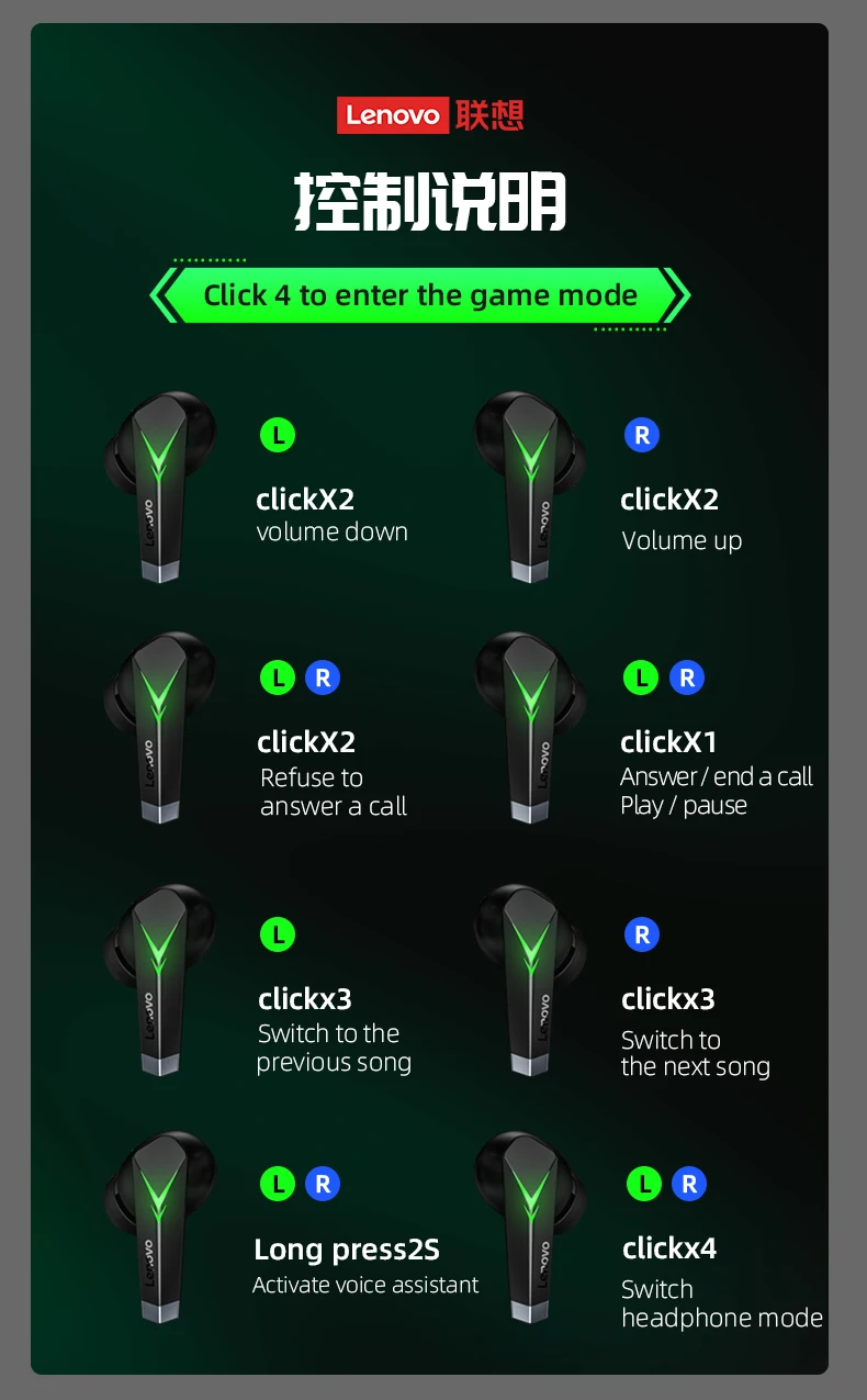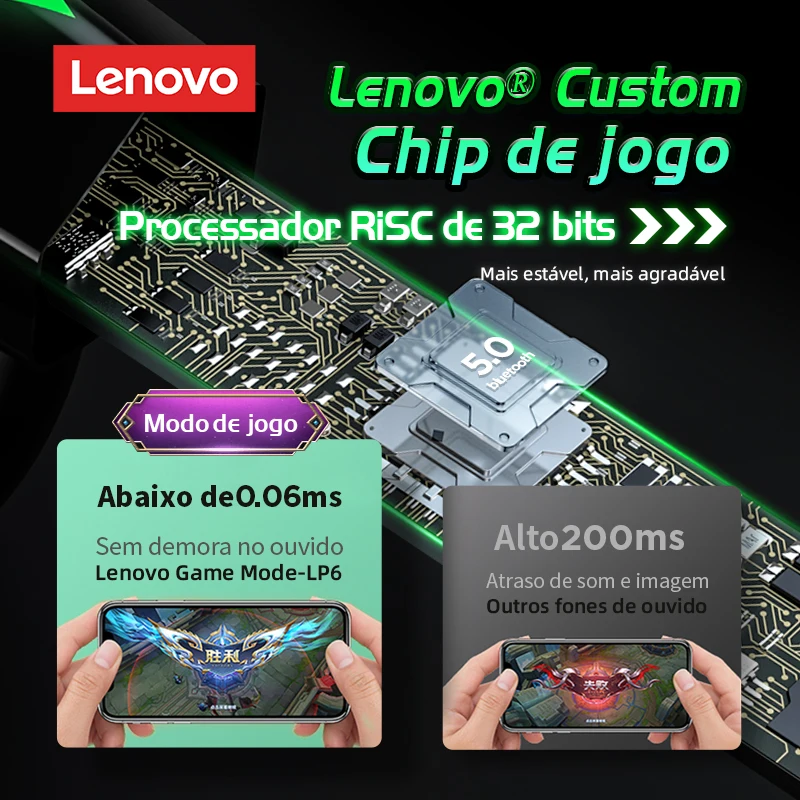 Comprar Lenovo LP6 Auriculares Inalámbricos TWS, Cascos con Bluetooth, Reducción de Ruido, Modo Dual para Deportes Electrónicos, Juegos y Música, Videojuegos