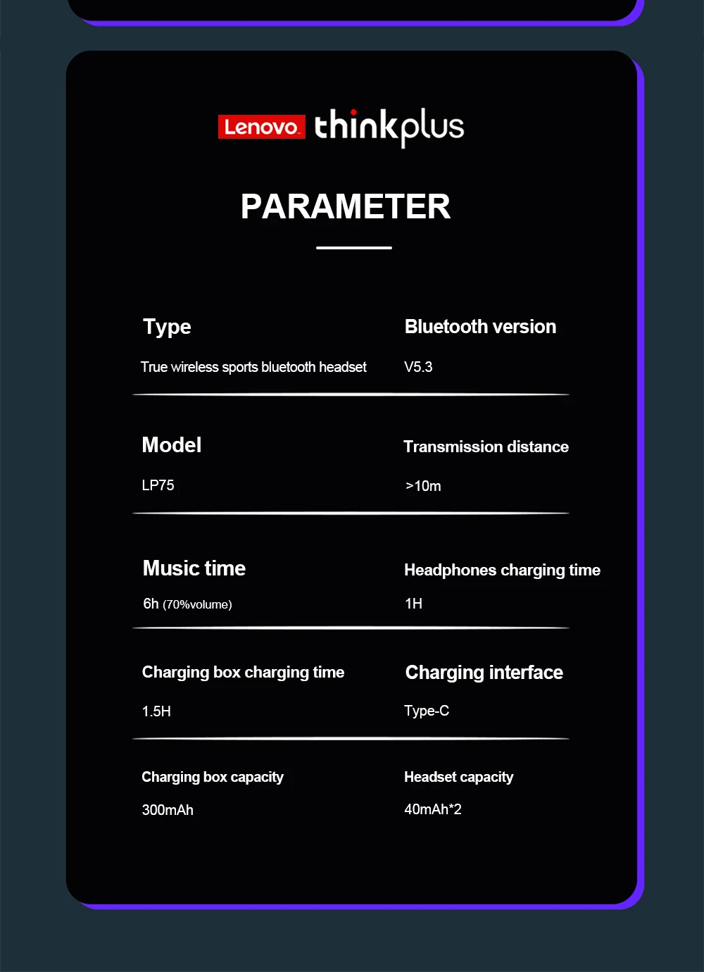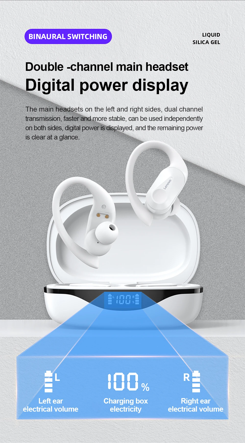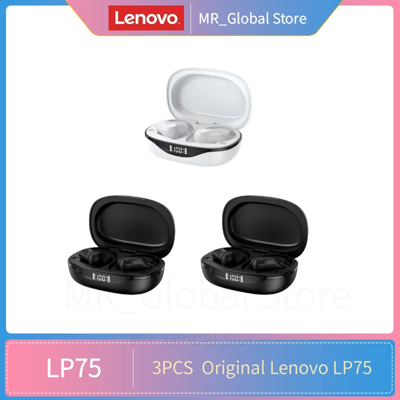 Comprar Lenovo LP75-Auriculares deportivos TWS, inalámbricos por Bluetooth 5,3, resistentes al agua, estéreo HiFi, con reducción de ruido y micrófonos, 3 uds.