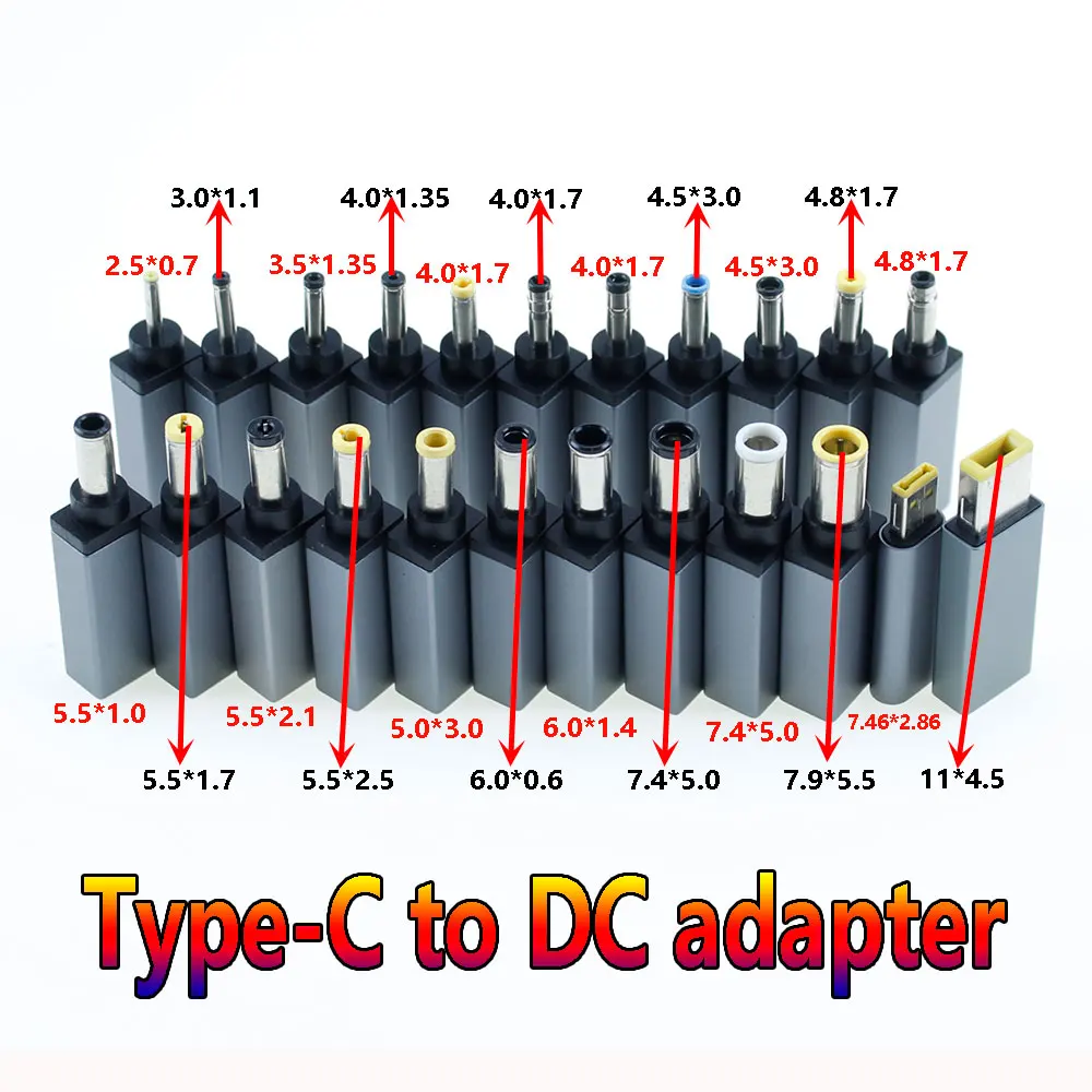 1 Uds tipo C a cabezal de CC Lenovo Puerto cuadrado PD a HP Dell y otros portátiles tipo C A Adaptador de CC de cabeza redonda