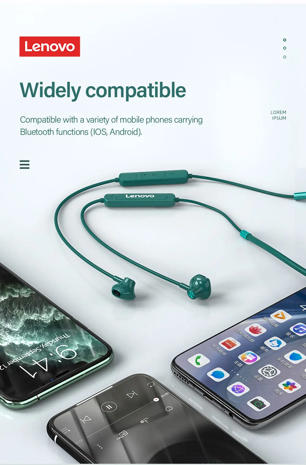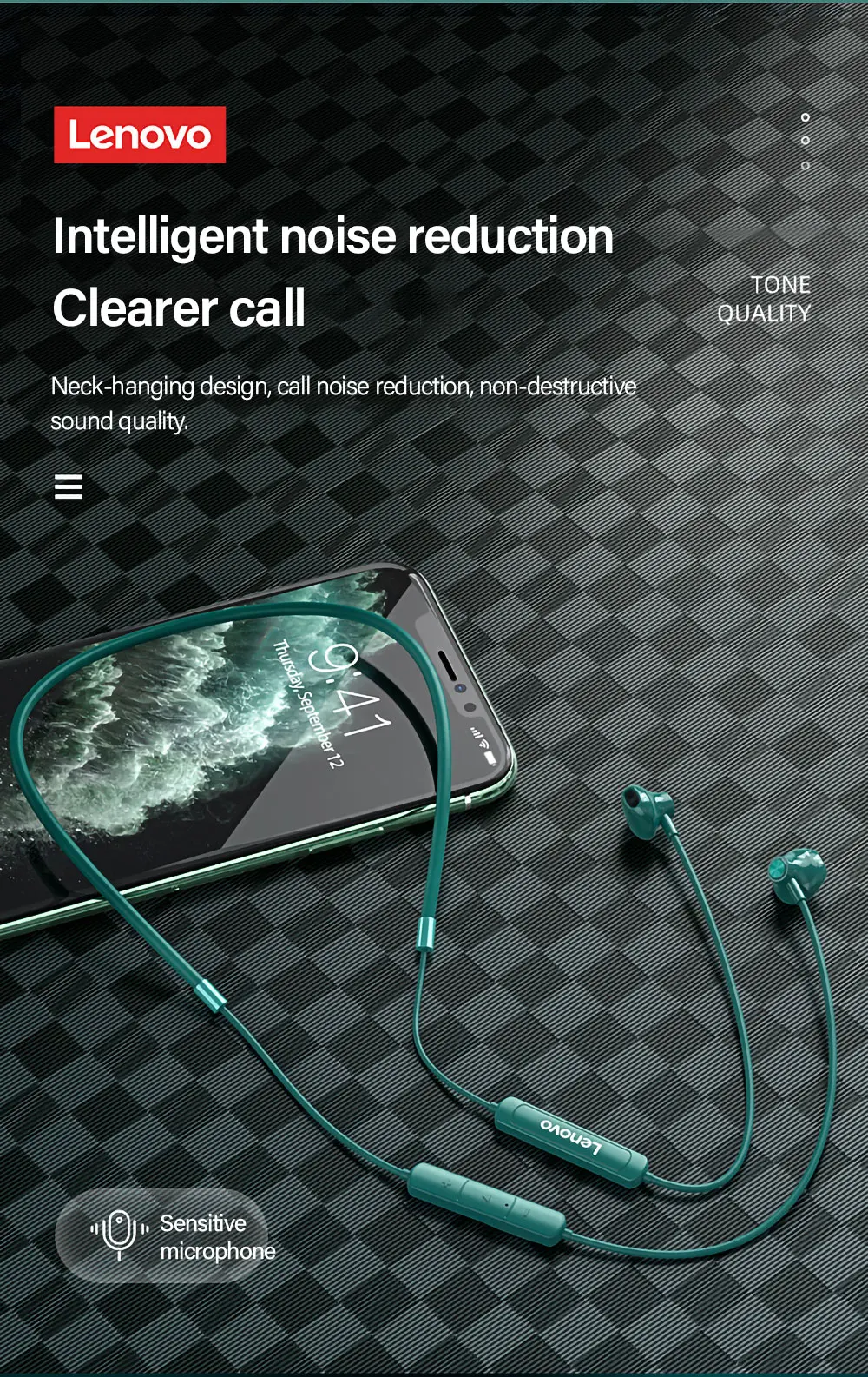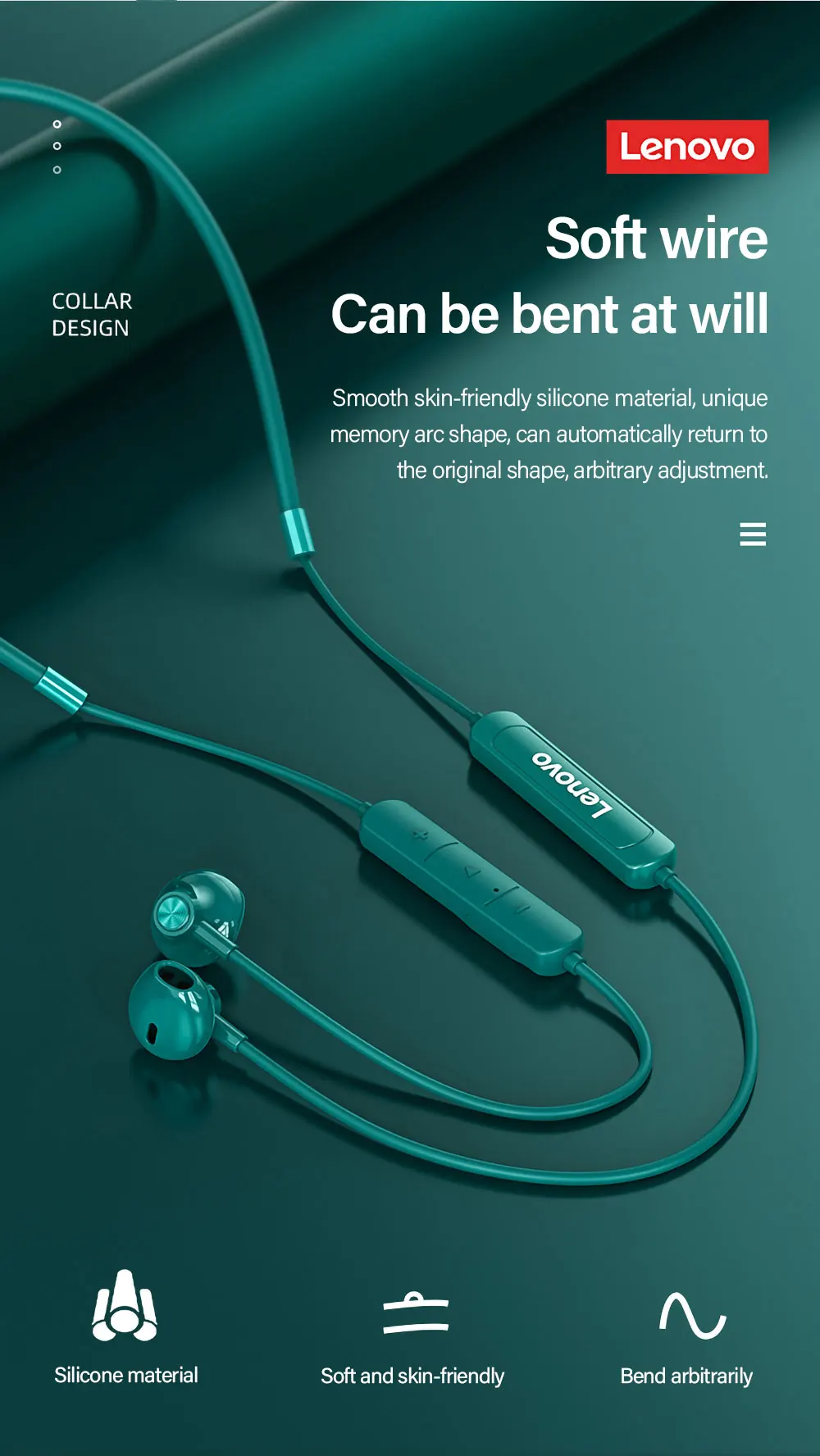 Lenovo SH1 auricular inalámbrico Bluetooth 5,0, auriculares con banda para el cuello, sonido HIFI, auriculares magnéticos deportivos, auriculares impermeables IPX5 con micrófono