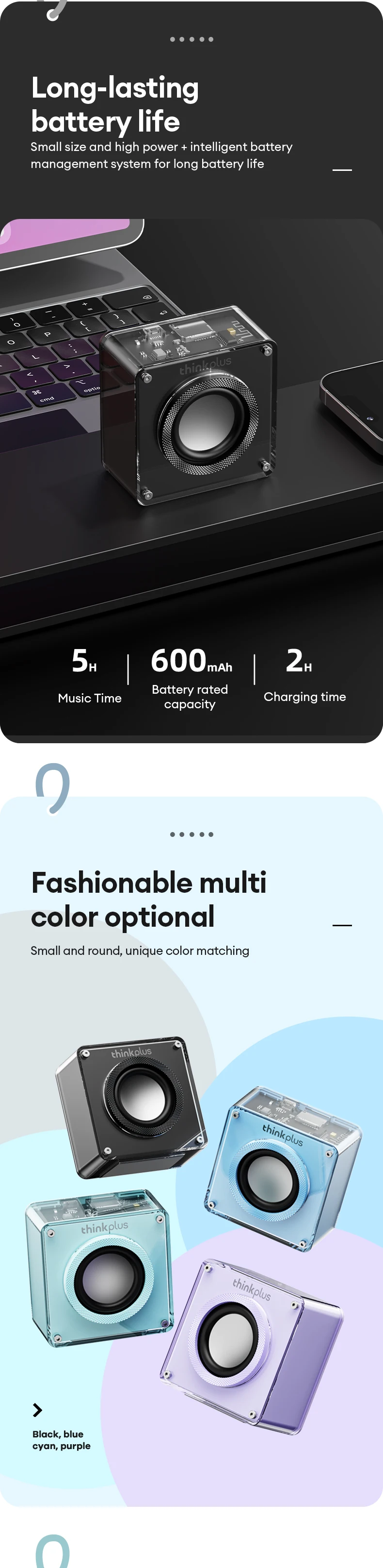 ⬤[Tamaño compacto, rendimiento explosivo]:A pesar de su pequeño tamaño, ofrece una excelente experiencia de audio con potencia de salida duplicada, logrando un equilibrio perfecto entre calidad y tamaño del sonido.