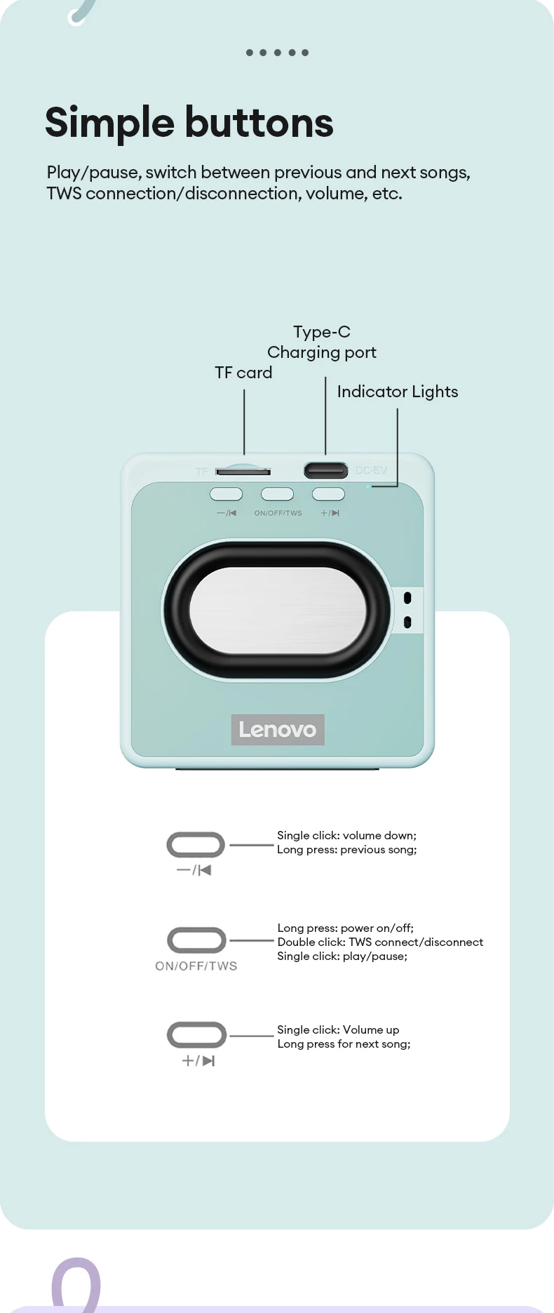 Altavoz Lenovo TS50 Bluetooth 5.4